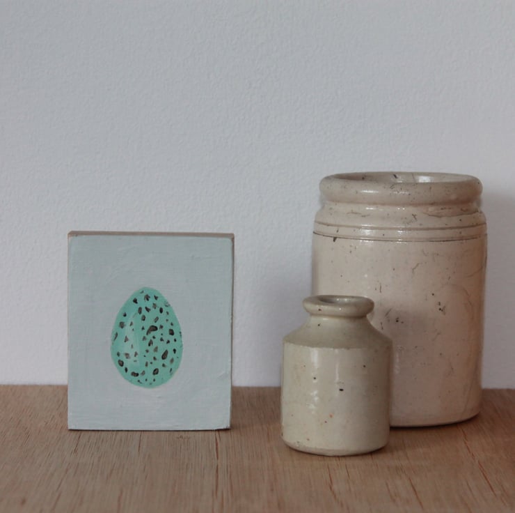 This is an original painting of a blackbird egg on reclaimed plywood. It has been painted in acrylics and sealed with a thin protective coat of matt varnish.