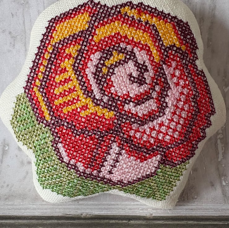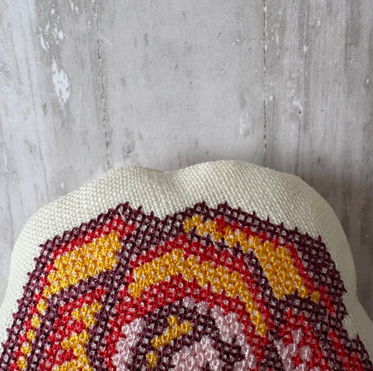 May is almost here and the end of Spring. This little pillow of joy has a rose cross stitched by my embroidery machine. Made from perfectly pale prewashed linen, filled with polyester fibrefill. Buy one as a small gift or fill a bowl for the season. Measures 4" x 3.5"