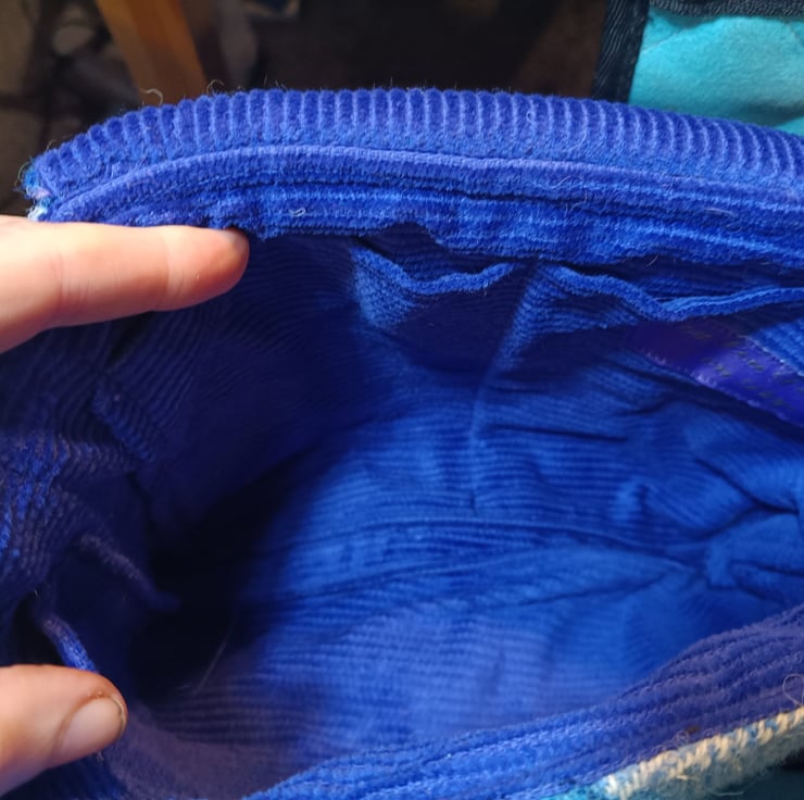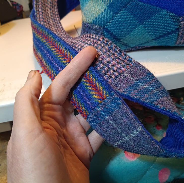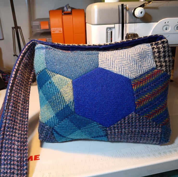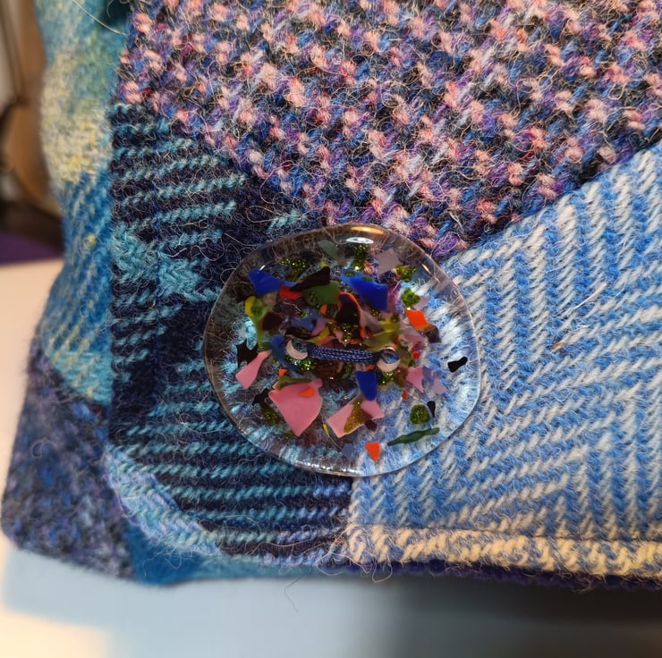 I am a designer and a maker of one of kind unique Harris tweed bags. This bag has a lovely mix of bold colours coupled with the stunning handmade glass buttons. This is one of my favourite designs. This one is my therapy. I enjoy the puzzle of putting it all together