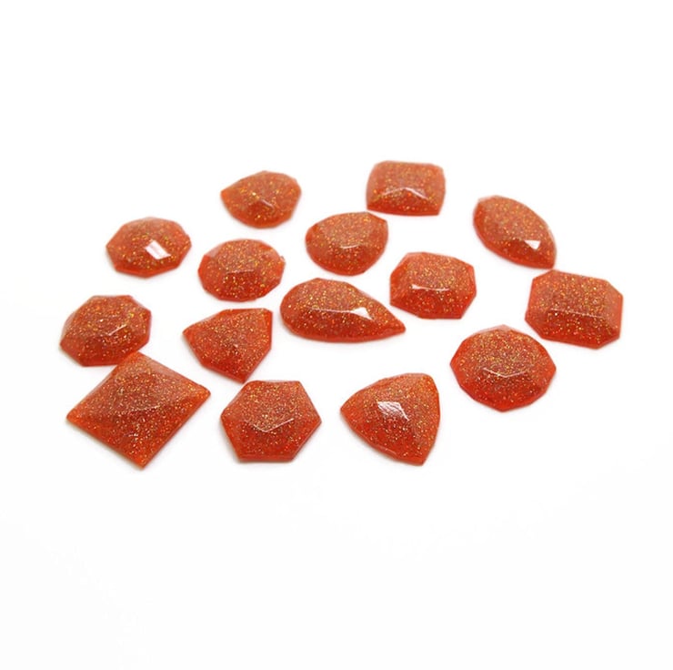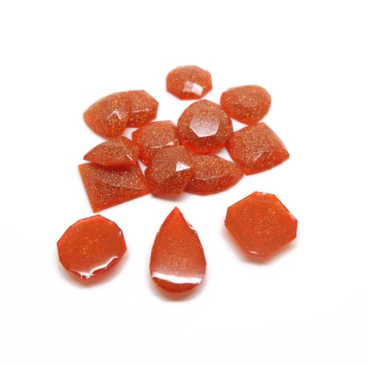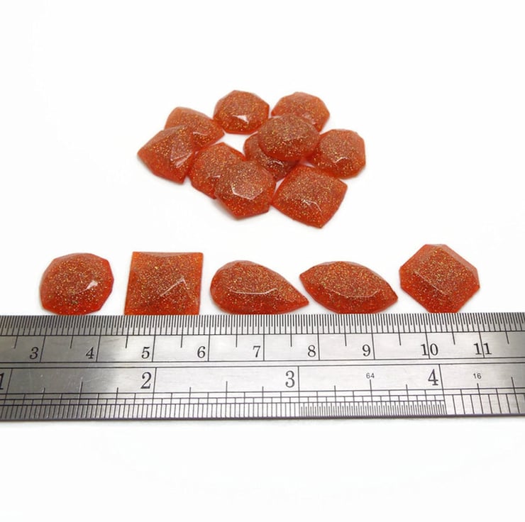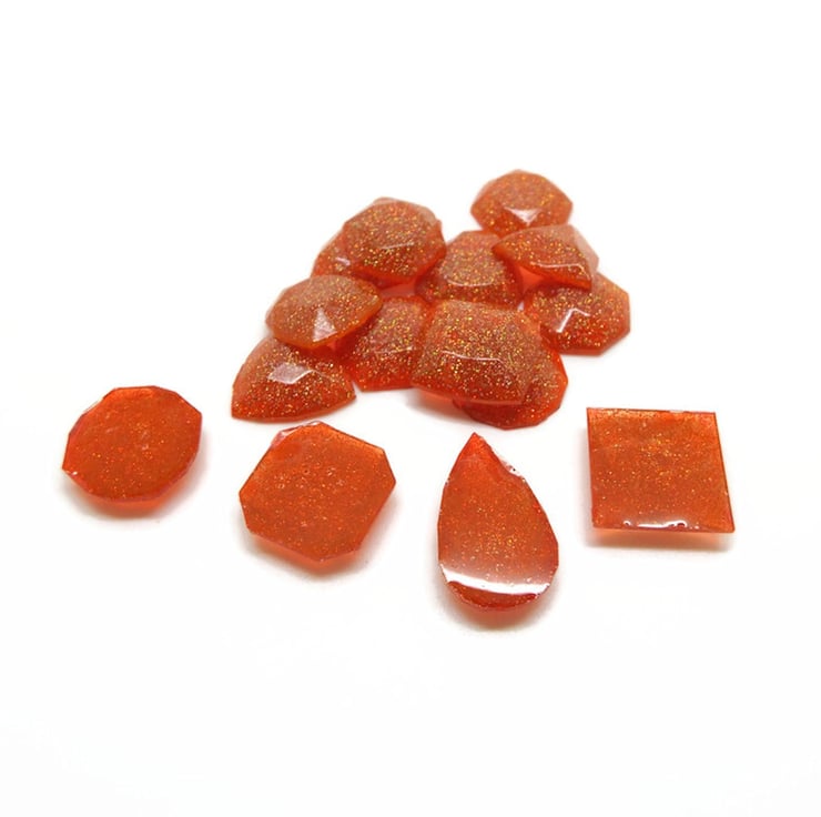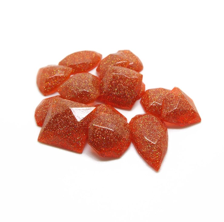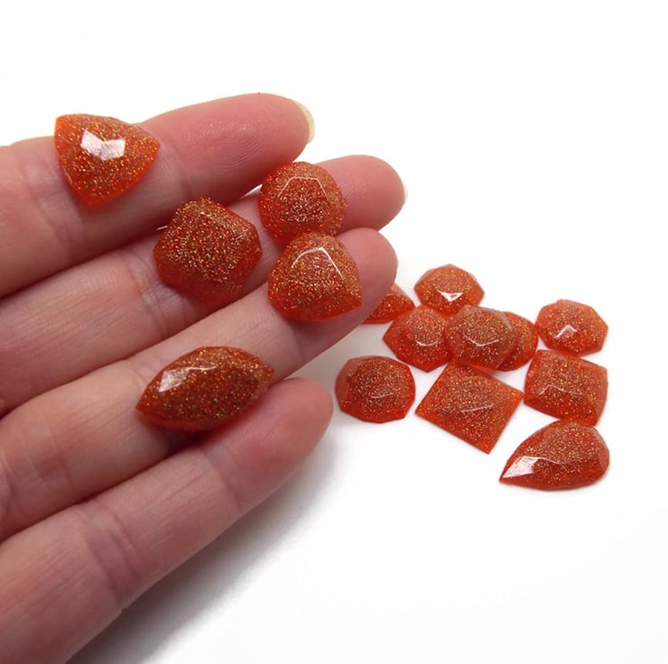 Set of 15 Handmade Resin Mini Faux Gemstone Flatback Cabochons with Gold Orange Holographic Glitter