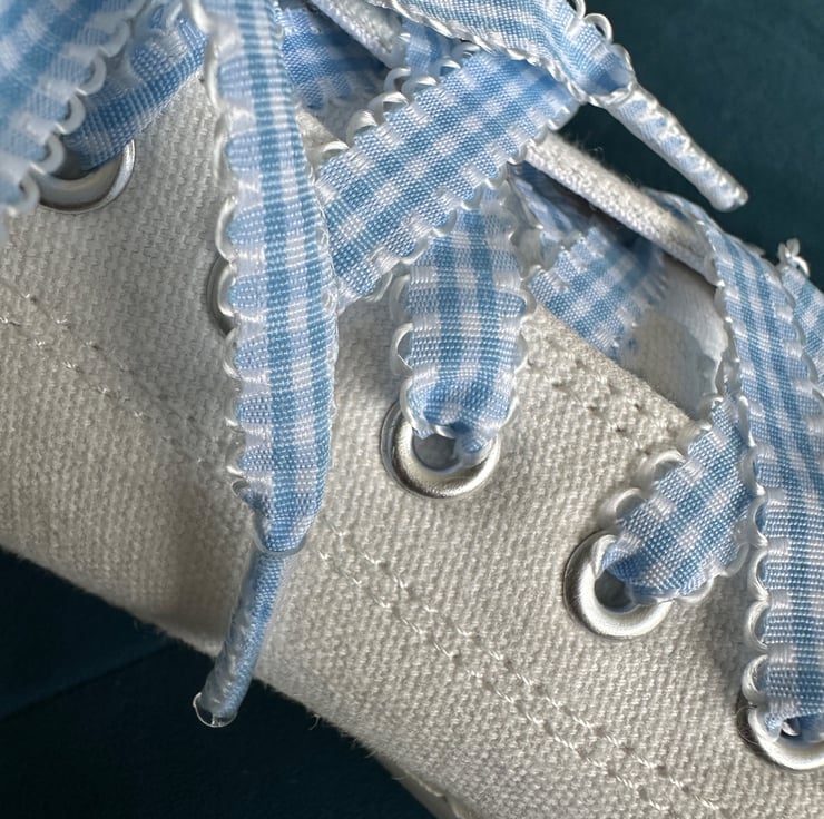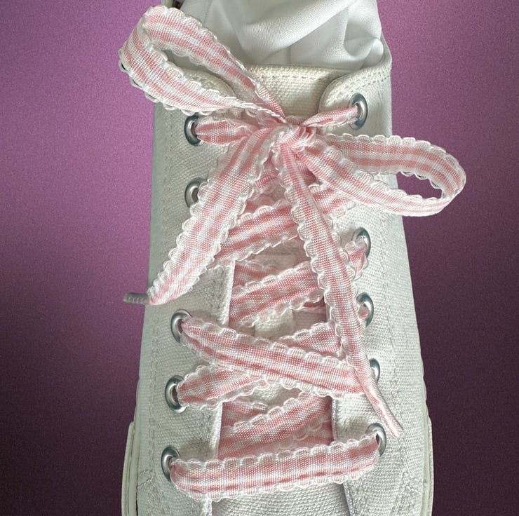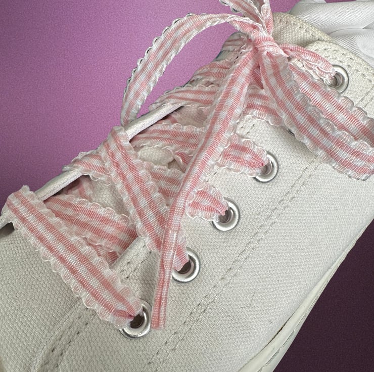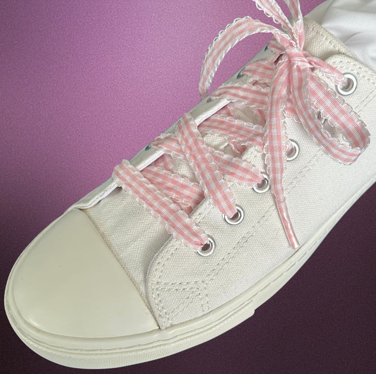 Give your shoes a little personality boost with these gorgeous gingham ribbon shoelaces, handmade to add a fun, decorative twist to trainers, pumps and fashion footwear.