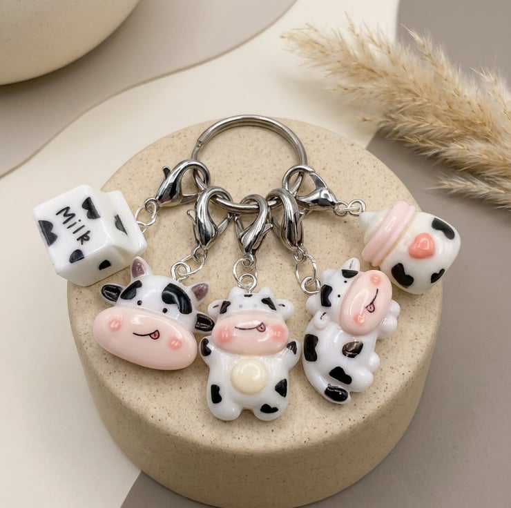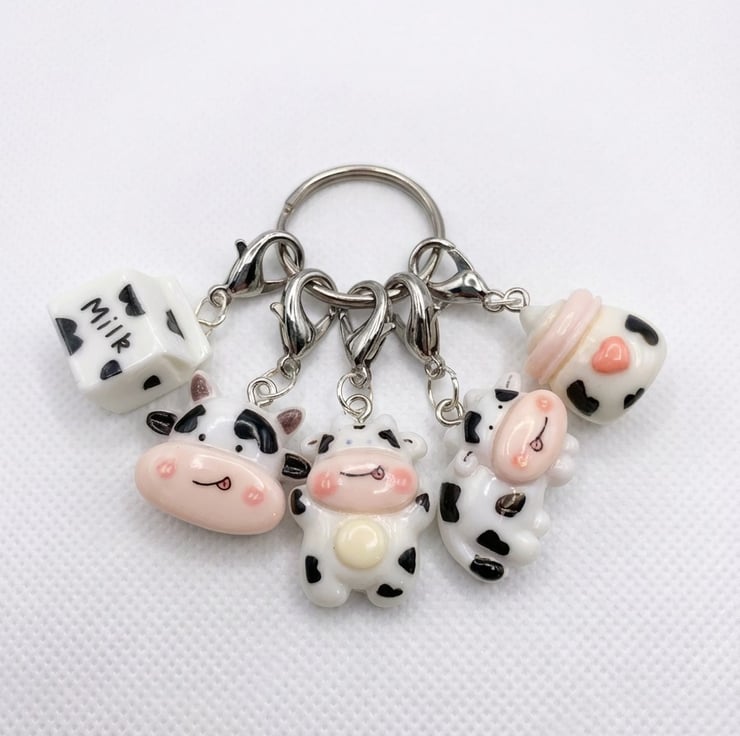 Add a touch of "moo-d" boosting charm to your next crochet project with this adorable Cow & Milk Stitch Marker Set. These charms are the perfect companions for makers who love whimsical, high-quality notions.