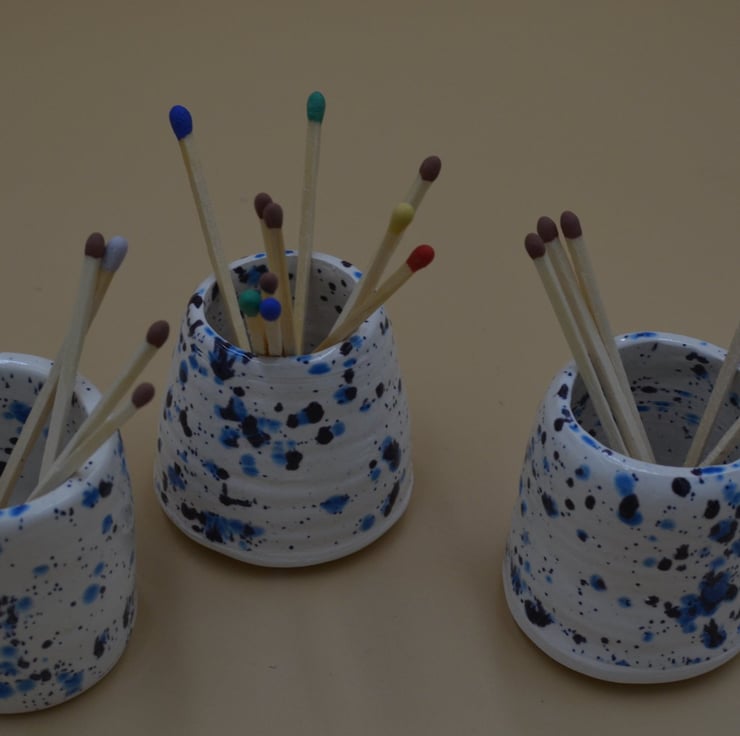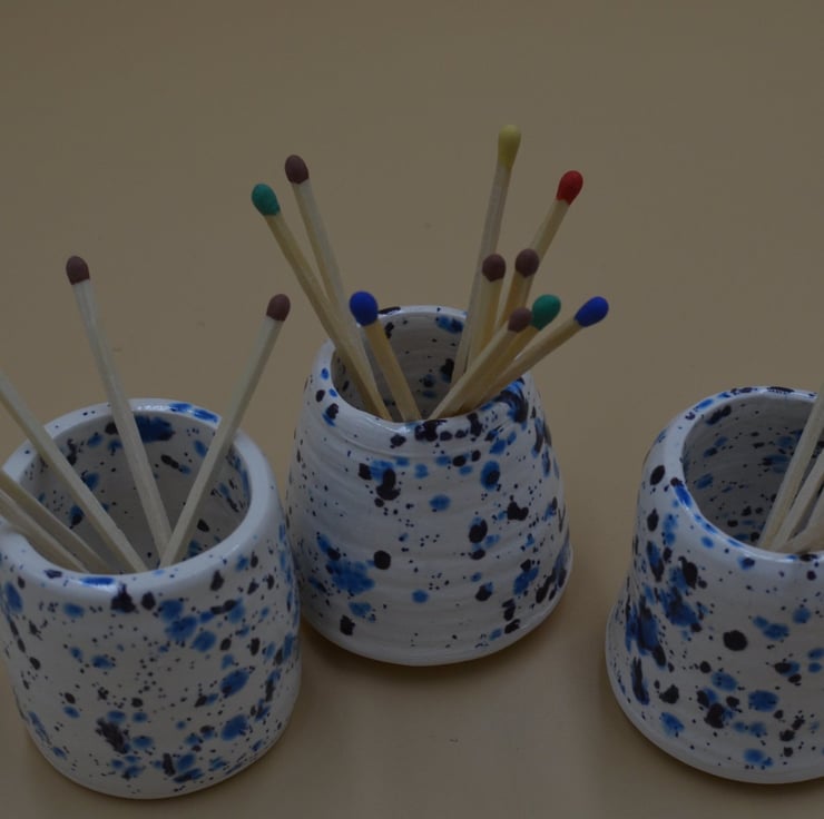 Unique matchstick holders that will be a practical talking point in your home!! Looks great on your mantel piece and practical as it has a strike pad on the bottom!! Because of the crystal glazes that I have used, no holder will come out the same. A very unique present! Comes with a set of 20 matches to start you off!!! Photed as a set of three - just let me know which one that you would like!
