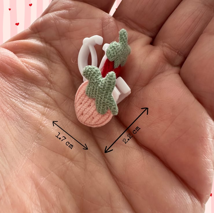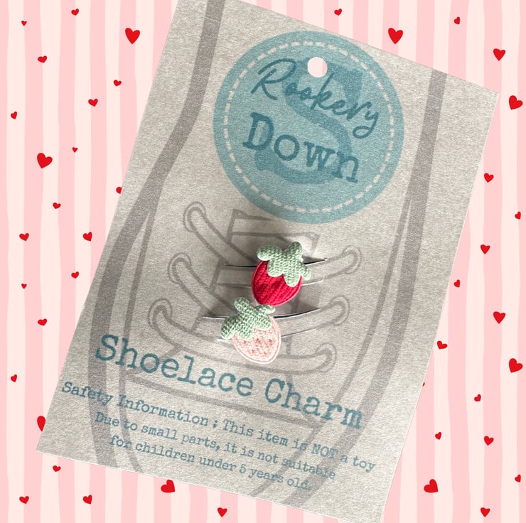 Each vintage-style strawberry; one pink and one red, is carefully mounted on a strong spring clip that either clips neatly into position, or can be threaded onto your laces. Designed to sit securely without weighing shoes down, they add a playful, nostalgic touch to trainers, pumps or boots.