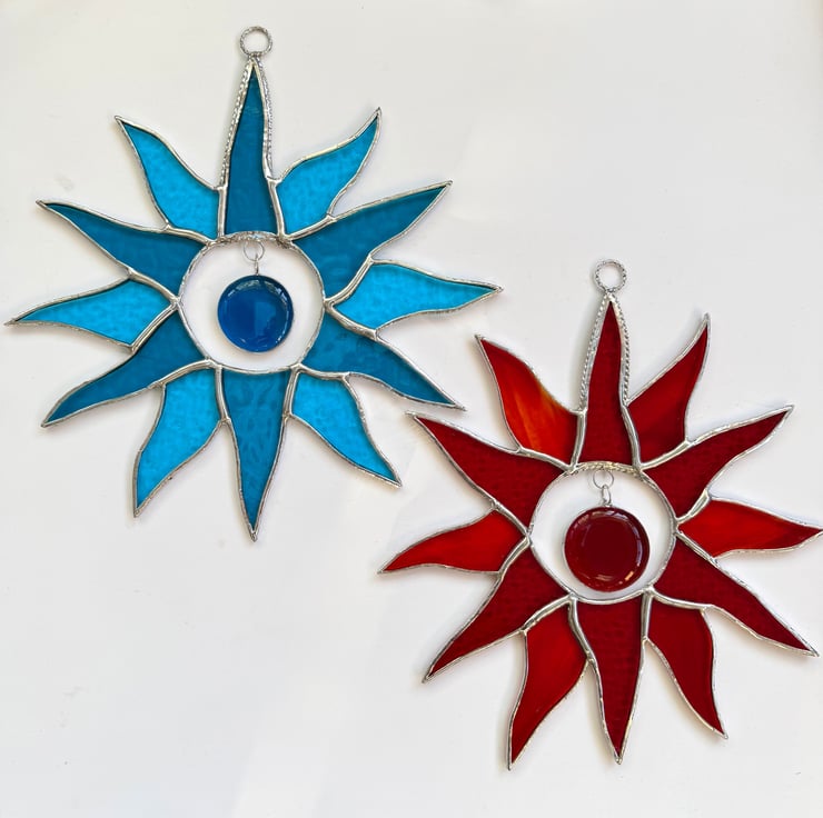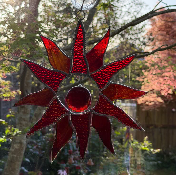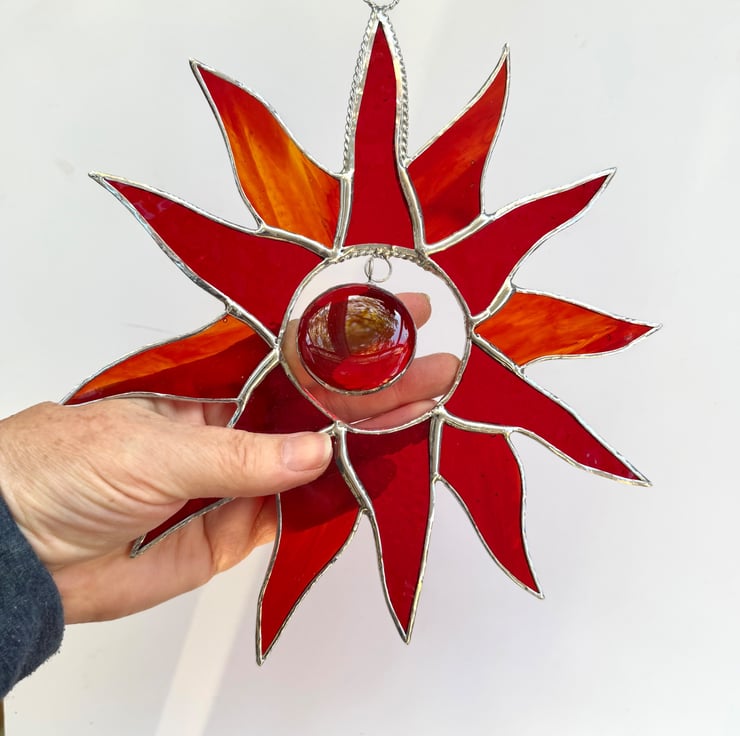Sunburst suncatcher made in beautiful stained glass by Carole's Glass.