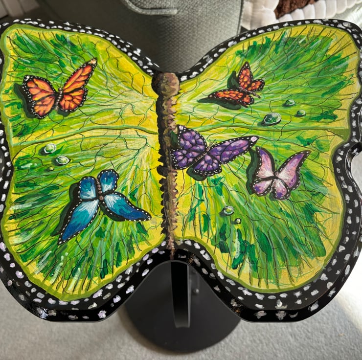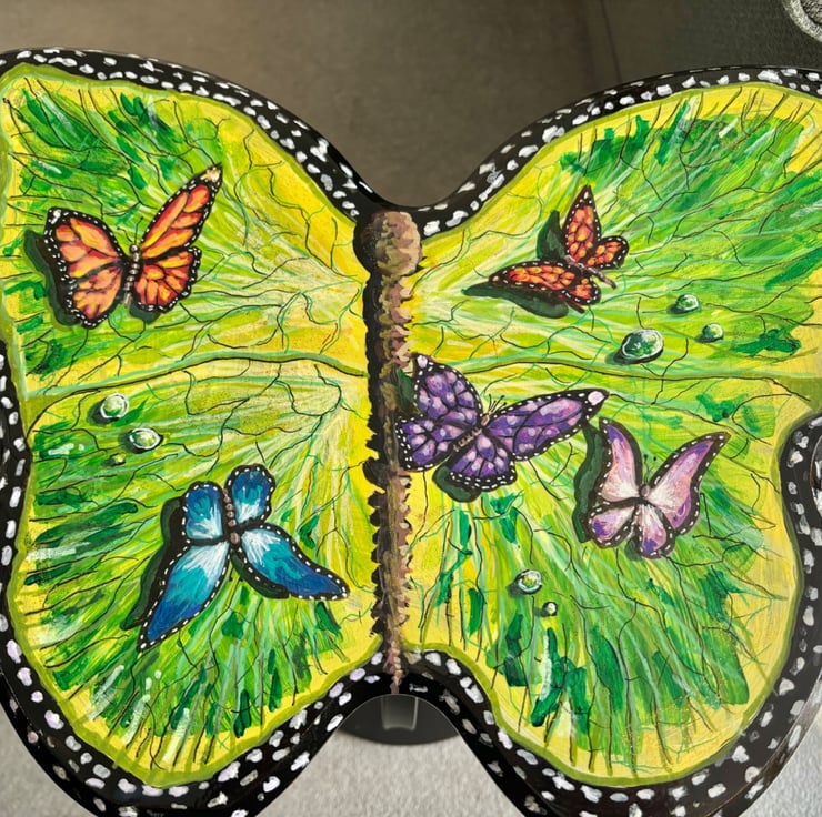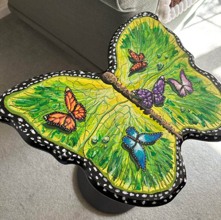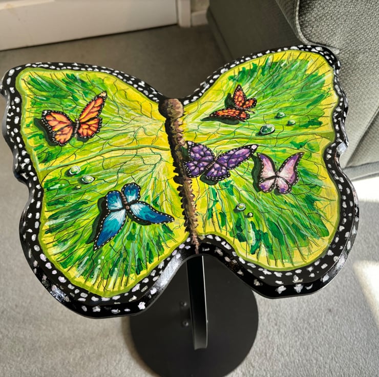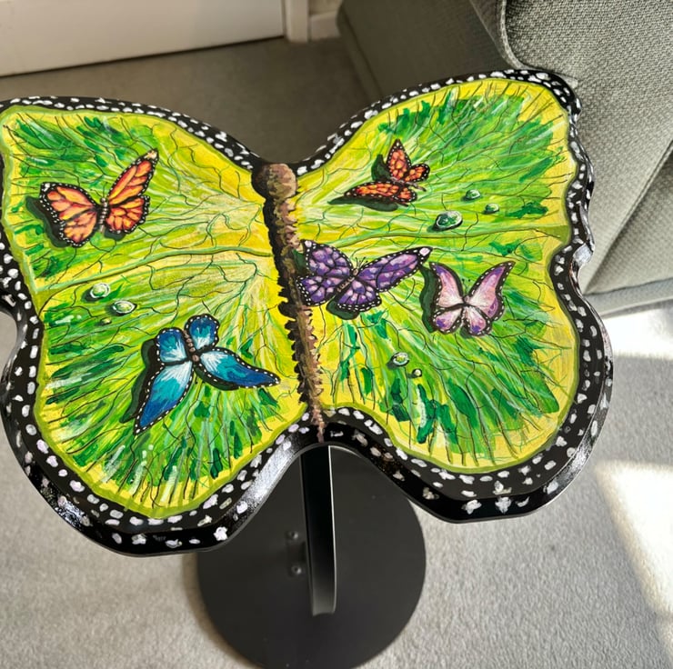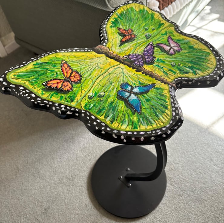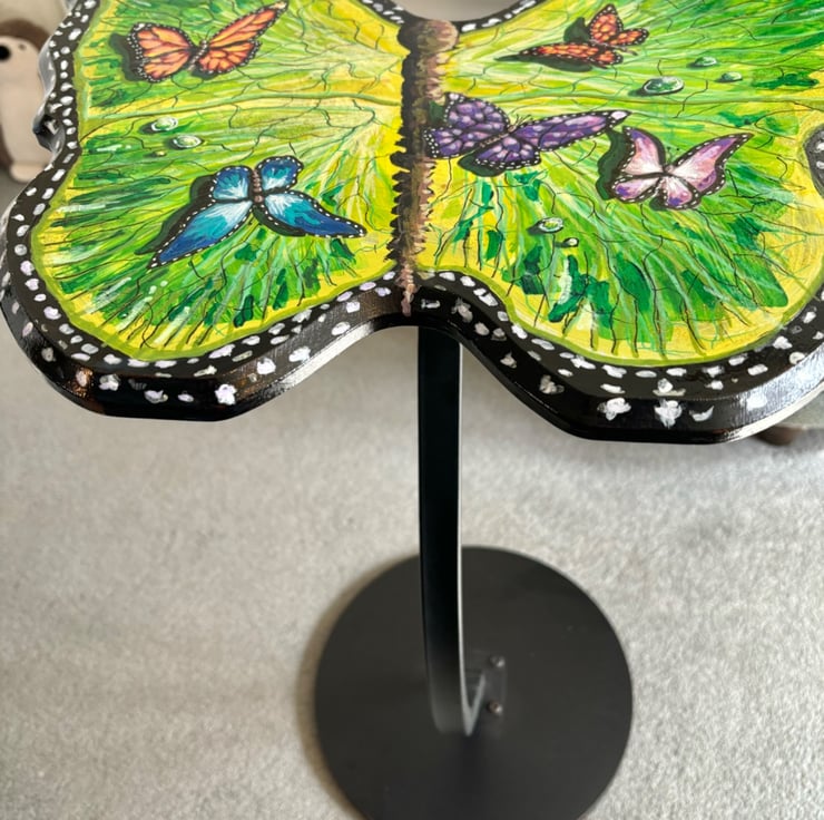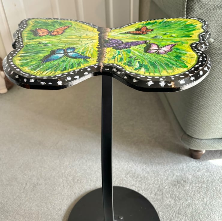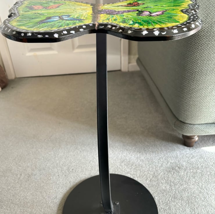 A hand painted and seal metal and wood side table by Andrew Jenkins