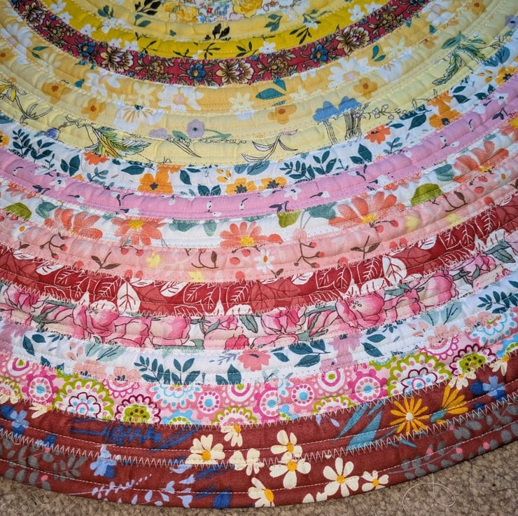 Oval shaped. Original jelly roll rug - 44" x 29" (112cm x 73.5cm) approx
