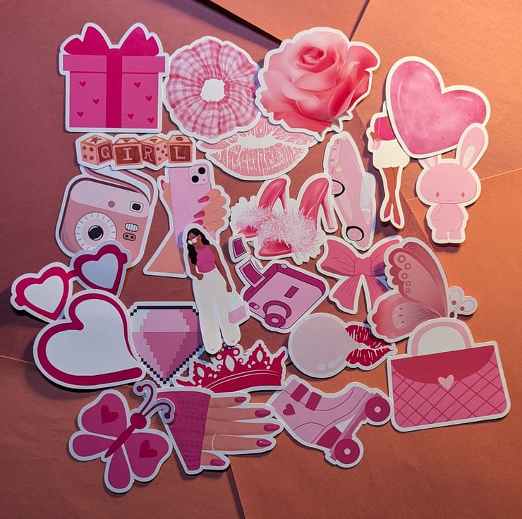 2550 Pink Theme Coloured Aesthetic VCSO Fan Lover Girl Aesthetic Stickers Waterproof Vinyl Stickers Pink Notebook, Journal, Laptop, Planner
