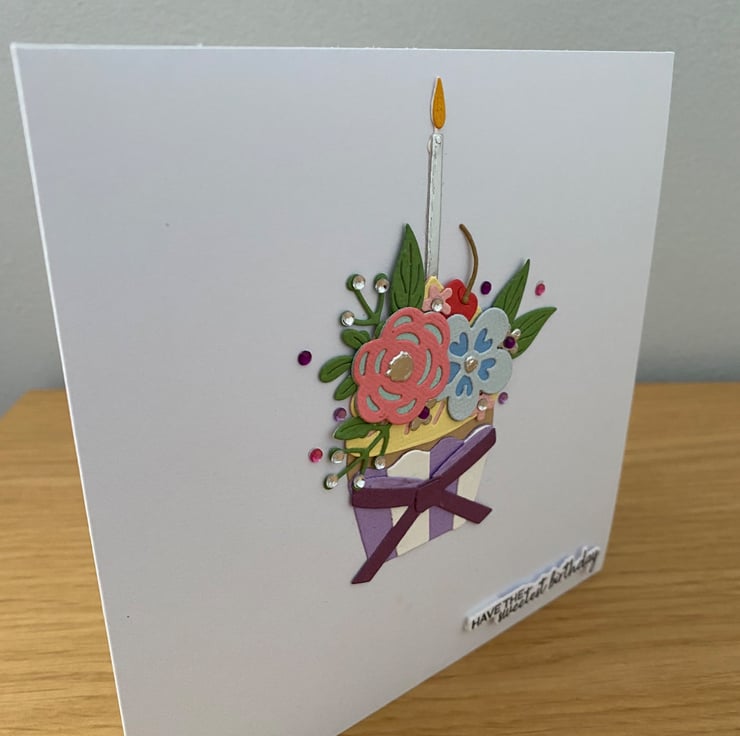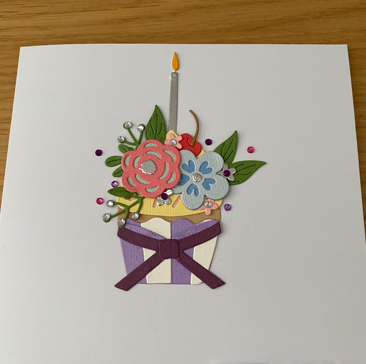 Die cut floral cupcake with candle