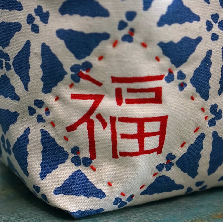 Add a touch of good fortune to your home with this square fabric storage basket, adorned with the timeless "Good Fortune" motif. Made from hand printed cotton fabrics, this fully lined basket is perfect for holding skincare, craft supplies, snacks or any everyday essentials. It brings both functionality and charm to any space. Handmade with care and love, this basket helps you to declutter and clear space for good fortune!