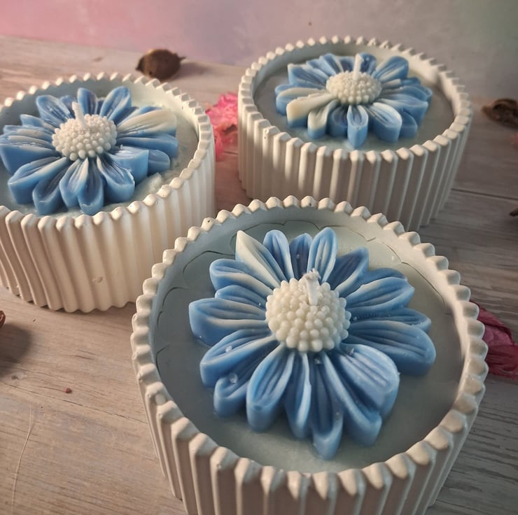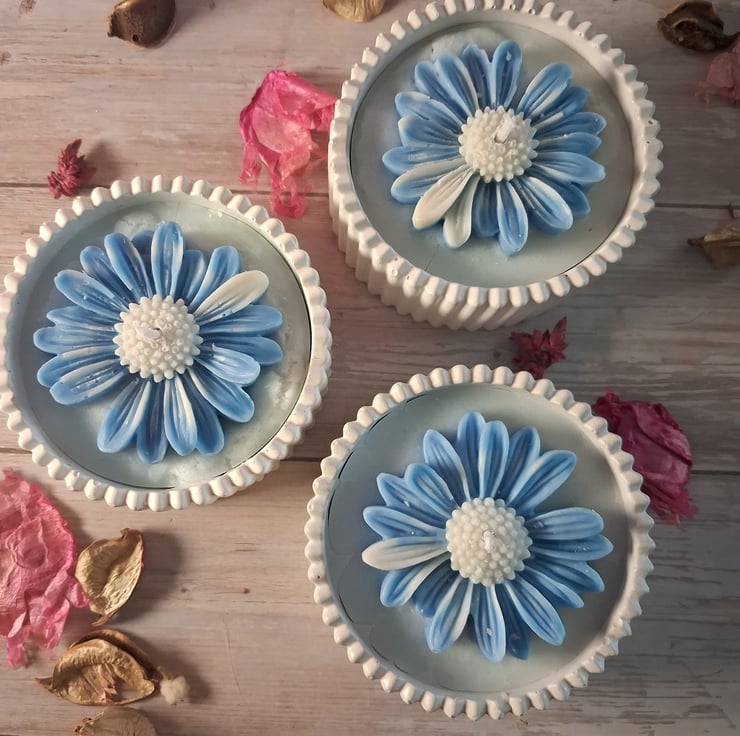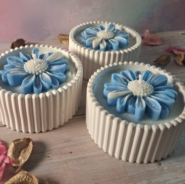The candle container is handmade from stonecast powder coated with acrylic high gloss varnish in the inside