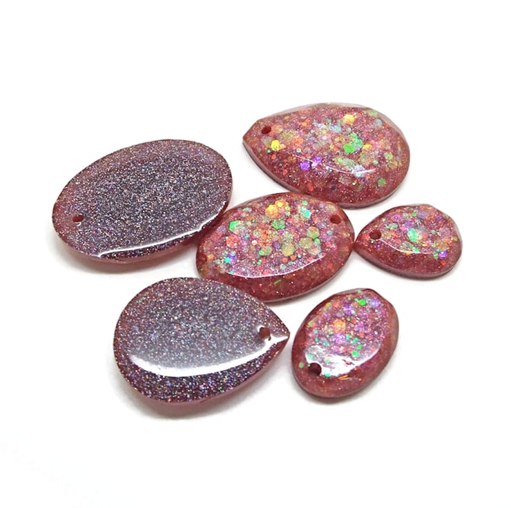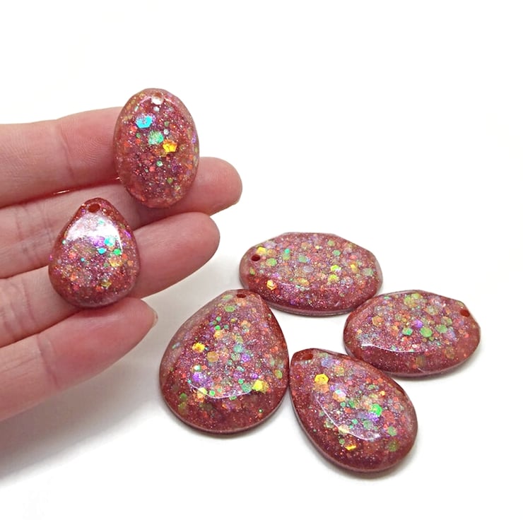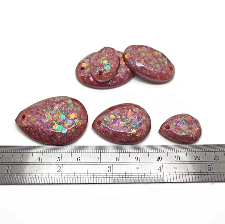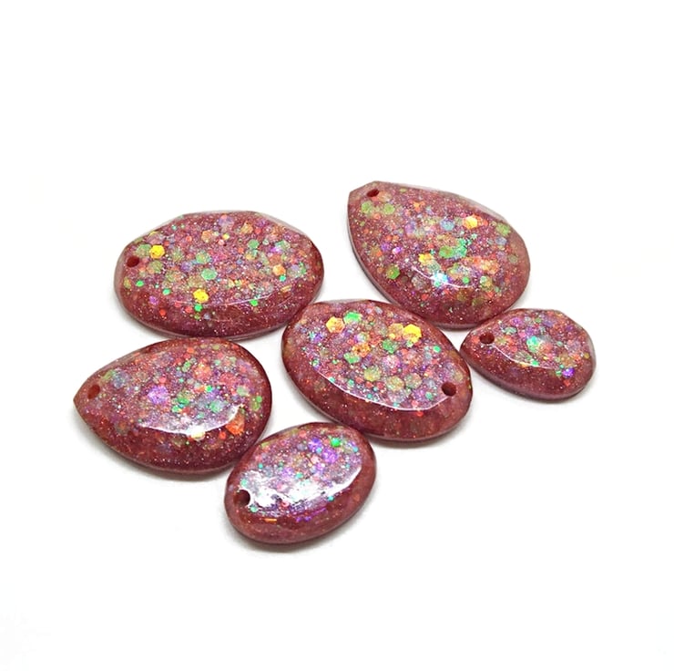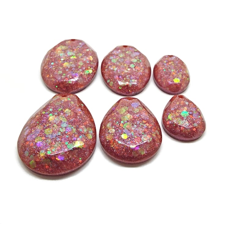 You will receive 3 Teardrop Pendants and 3 Oval Pendants. All the pendants are faceted and made in layers using 3 different glitters.