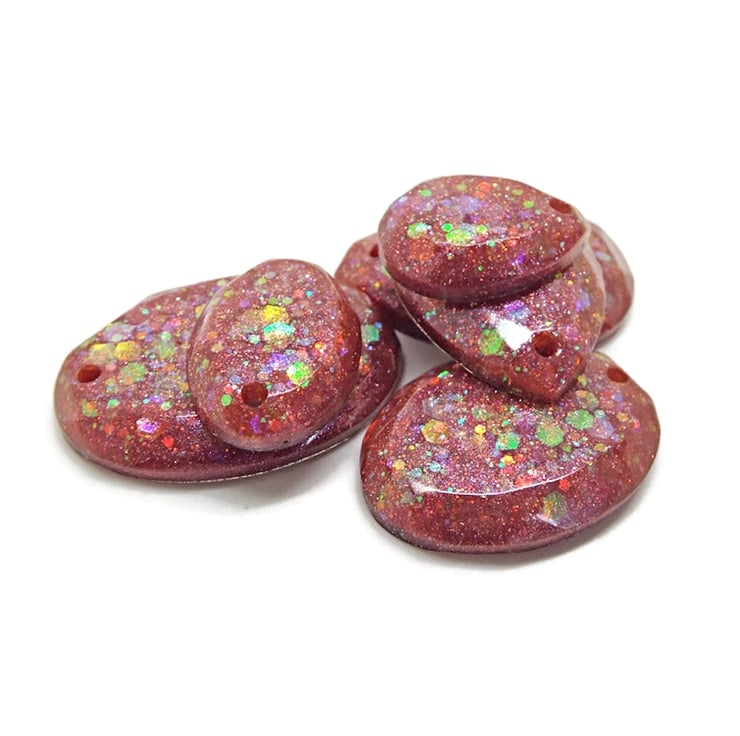 Pack of 6 Handmade Pendants in Dark Red Resin and Glitter.