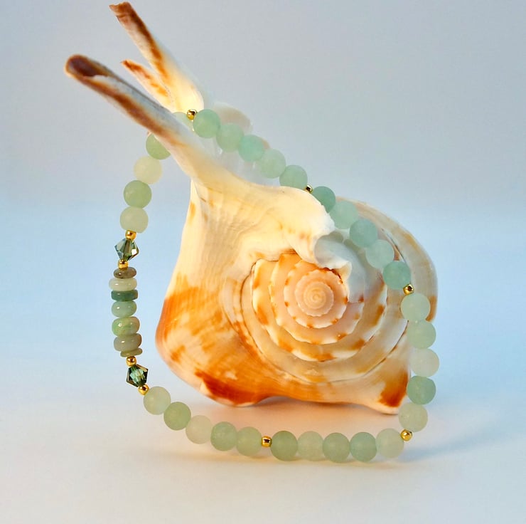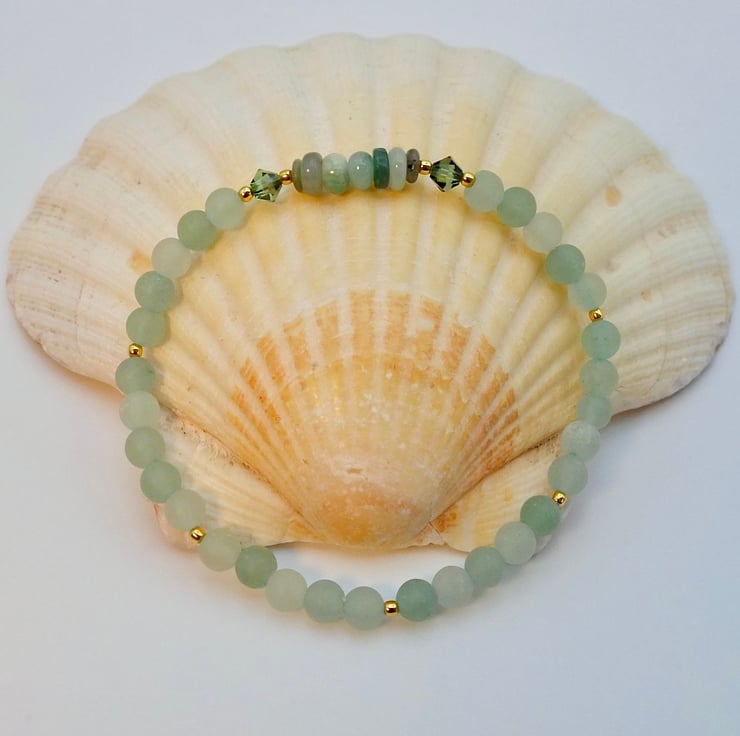 The green Aventurine beads are a lovely sage green colour of varying hues, set off by the shine of gold vermeil.