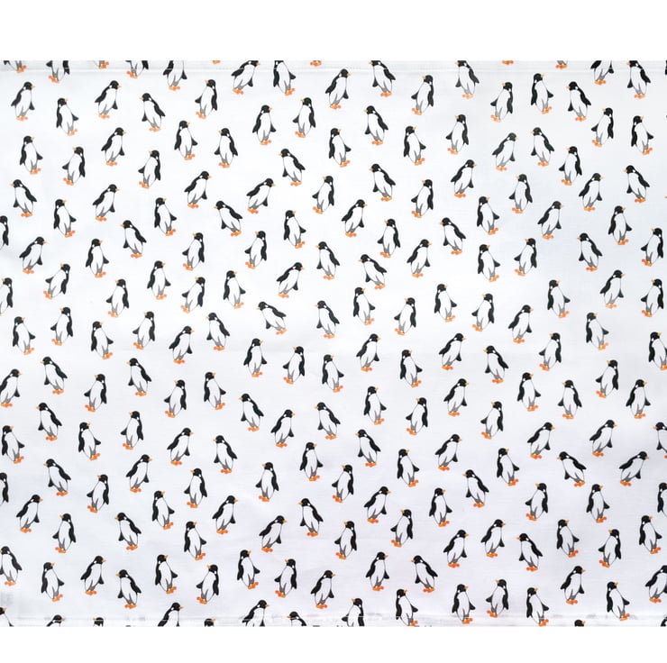 Handmade tea towel with lovely Penguin design on a cotton white fabric
