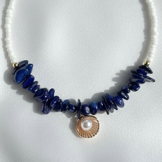 Step into elegance with this deep-sea inspired handcrafted anklet. Perfectly blending the crispness of white with the rich, sophisticated tones of dark blue, this piece is designed to make a statement whether you're barefoot on the beach or wearing your favourite summer sandals on a warm sultry evening.