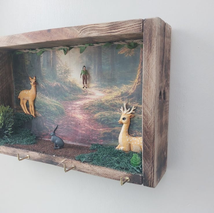 Rustic Woodland Shadow Box Key Holder with Deer & Forest Scene