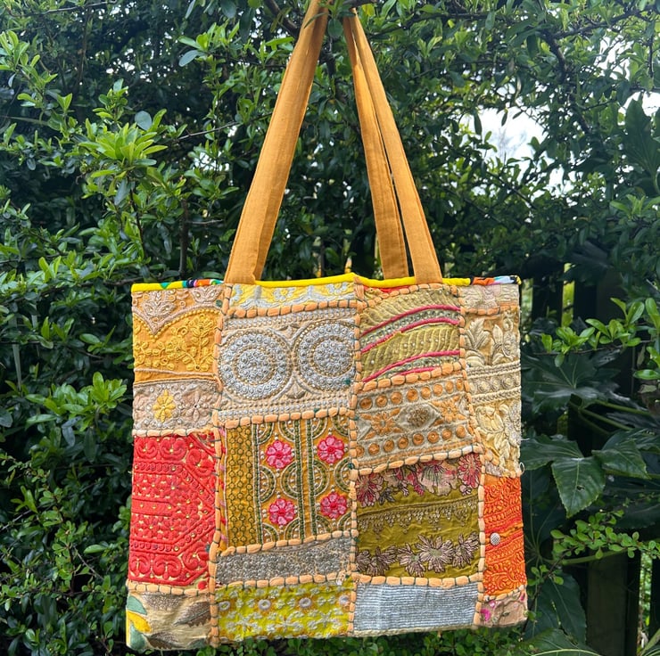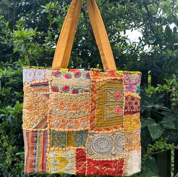 Handmade from genuine embellished/patchwork effect fabric from Goa