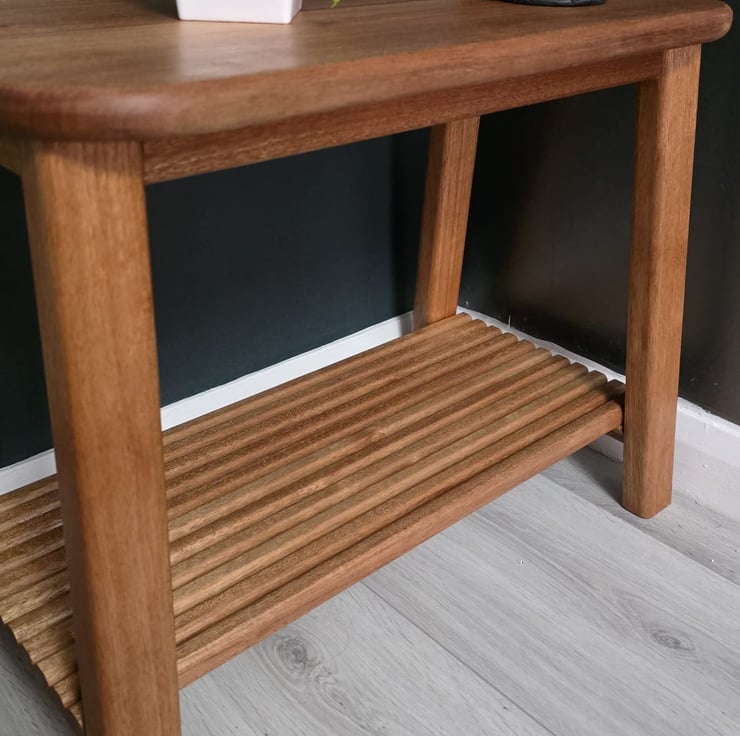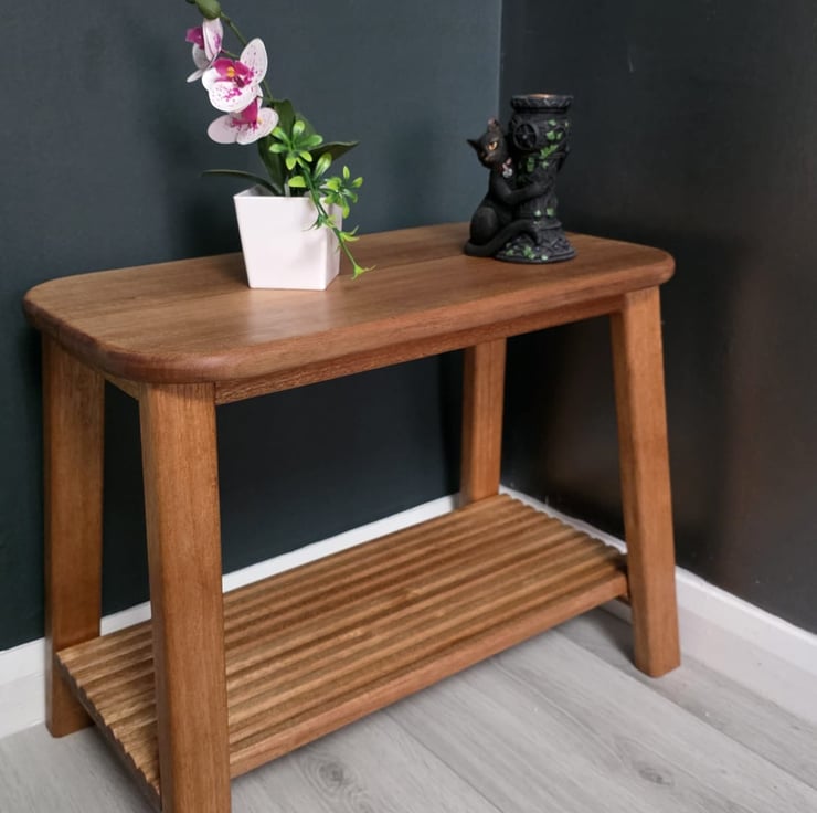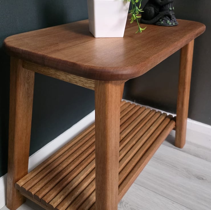This compact side table is made from solid meranti, known for its warm tone and natural grain.