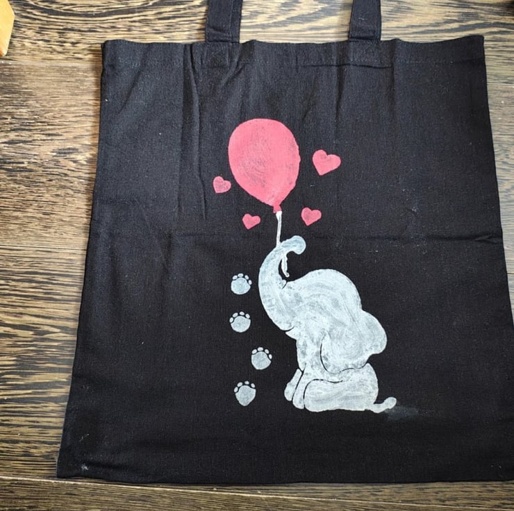 Cotton tote bag with a great design hand painted on the front. Great as a shopping bag, laptop bag, gift or gift bag.
