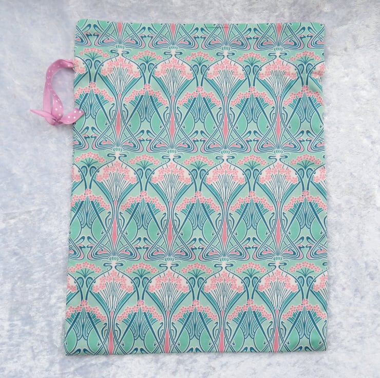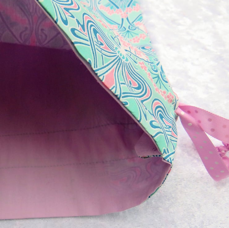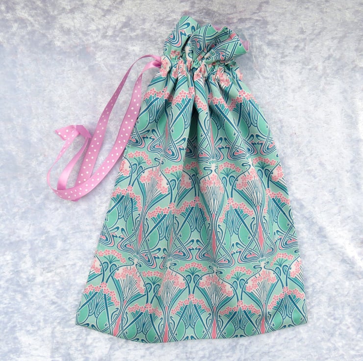 A lined drawstring bag, made from Liberty Tana Lawn.