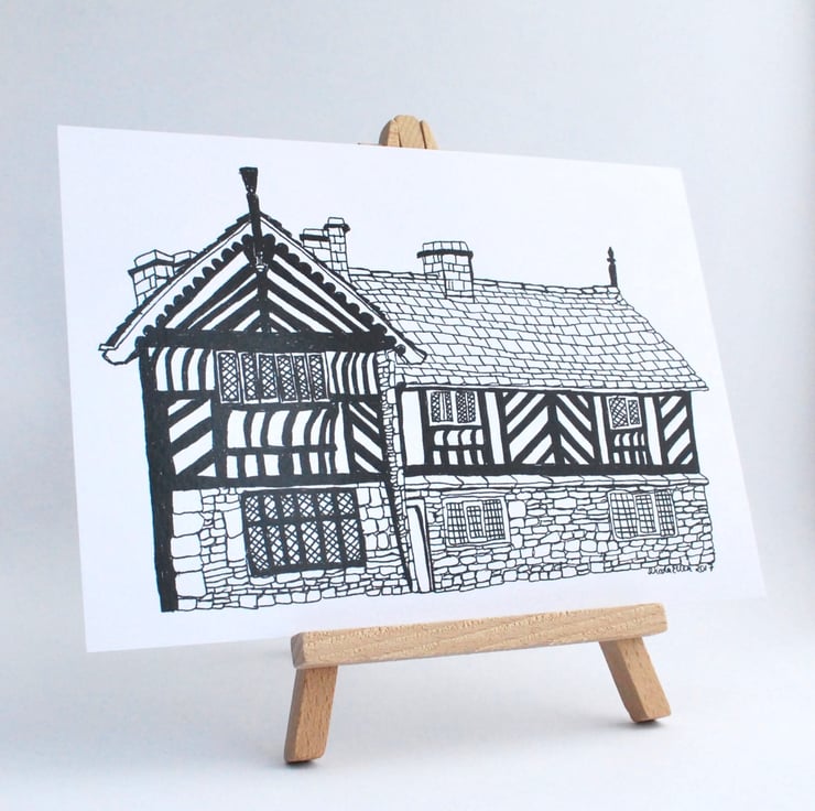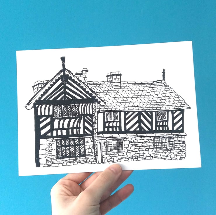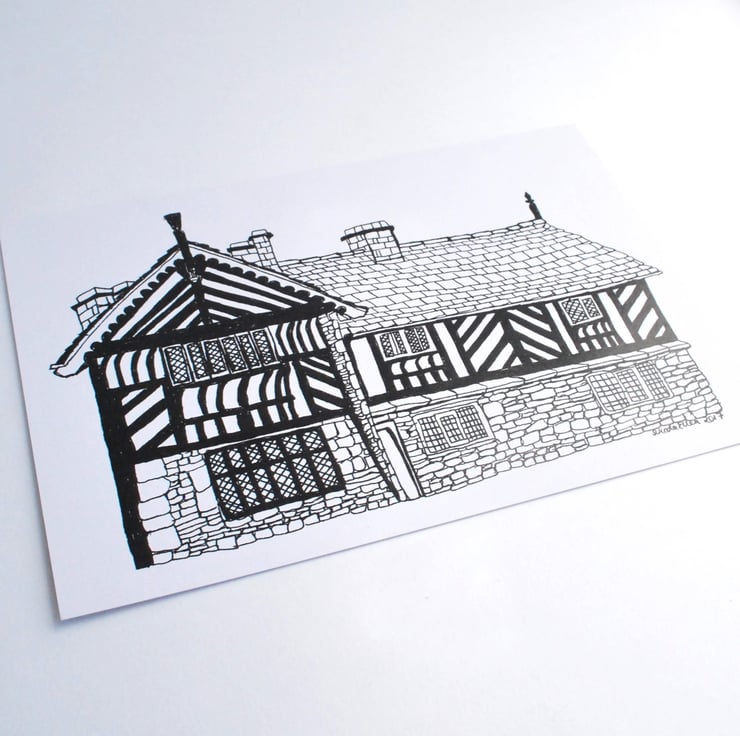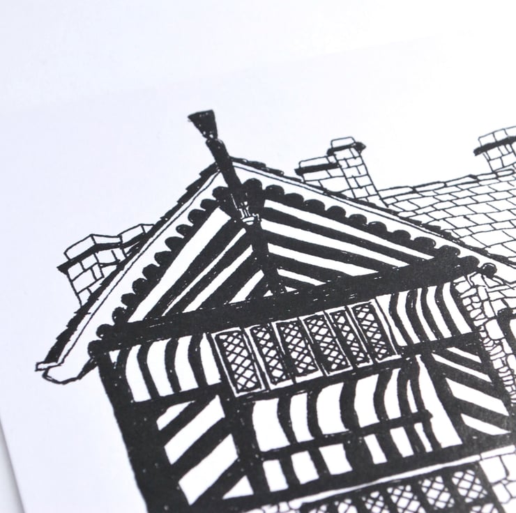 I illustrated Bishops' House with a Faber-Castell fine liner and it was then printed onto 300 gsm recycled paper - nice and sturdy and looks lovely framed on a wall either as a stand alone piece or as part of a collection of other prints and artworks.