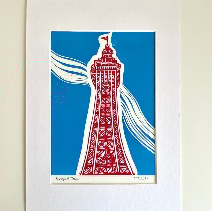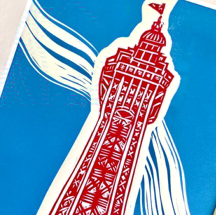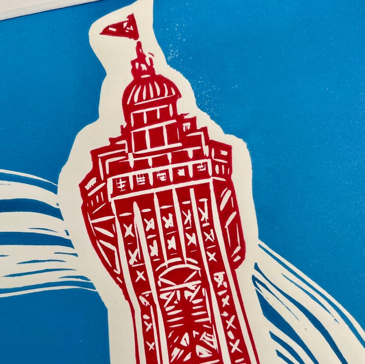 Blackpool Tower - Lino Print - Lancashire Art - Seaside art print