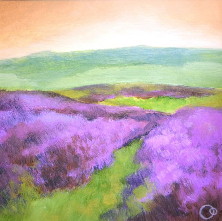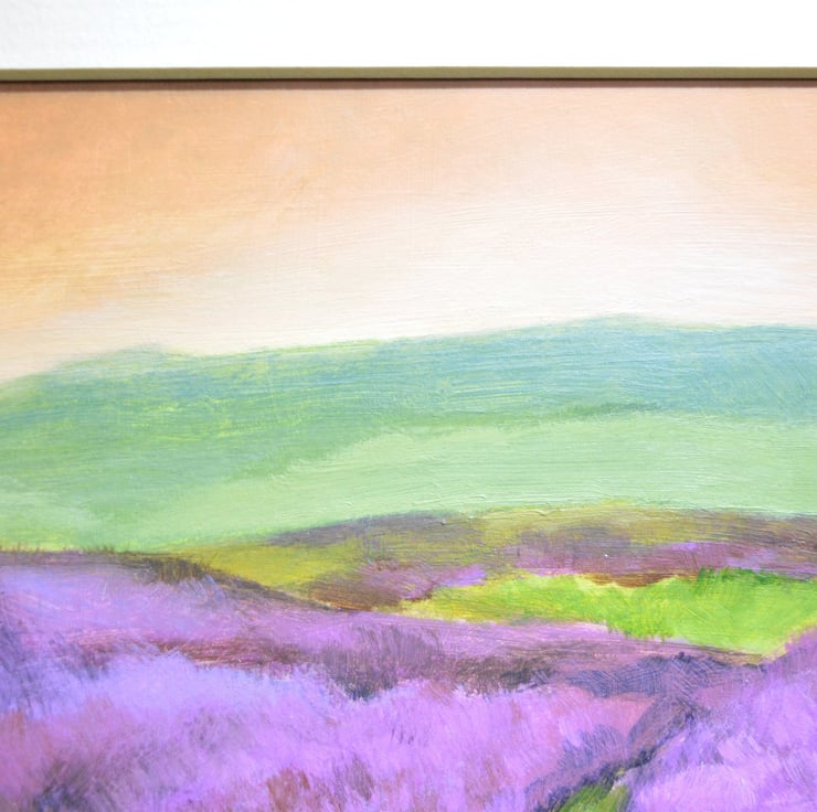 Beautify your environment with the enchanting allure of "Twilight Heather," an original small mounted unframed acrylic painting that captures the serene beauty of dusk gently embracing a field of heather. This unique piece evokes the peaceful transition of day into night, perfect for those who appreciate the tranquility of nature and the subtle play of light and color. Enhance your space with this original work of art that invites calm and reflection.
