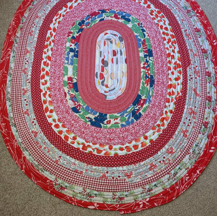 Oval shaped. Original jelly roll rug - 40" x 34.5" (101.5cm x 88cm) approx.