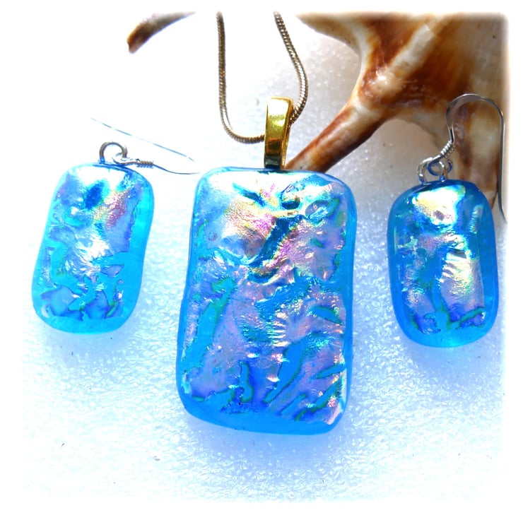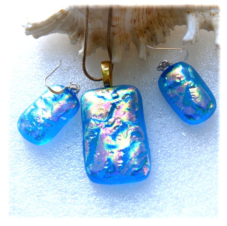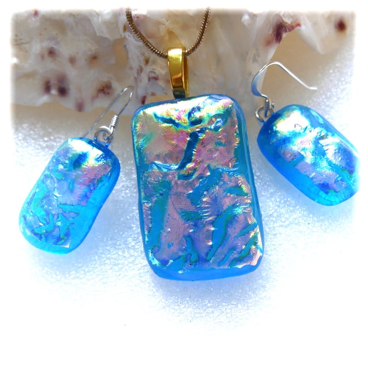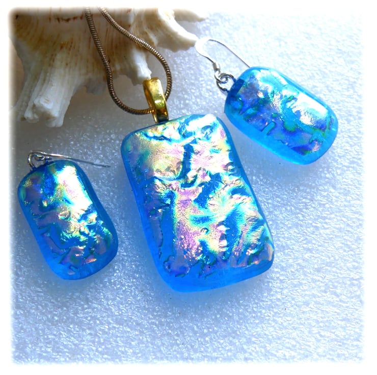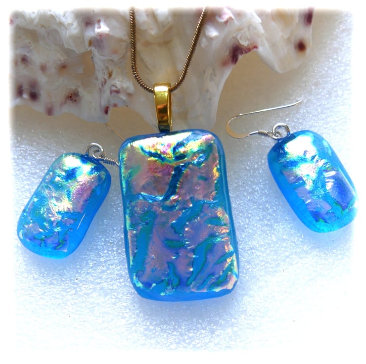 The dichroic glass cabochons for the pendant, matching earrings were handmade, by me with love.