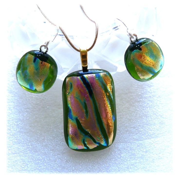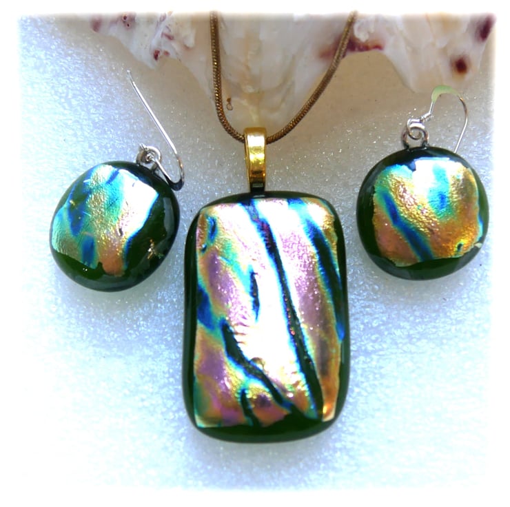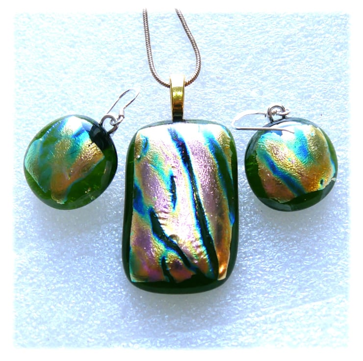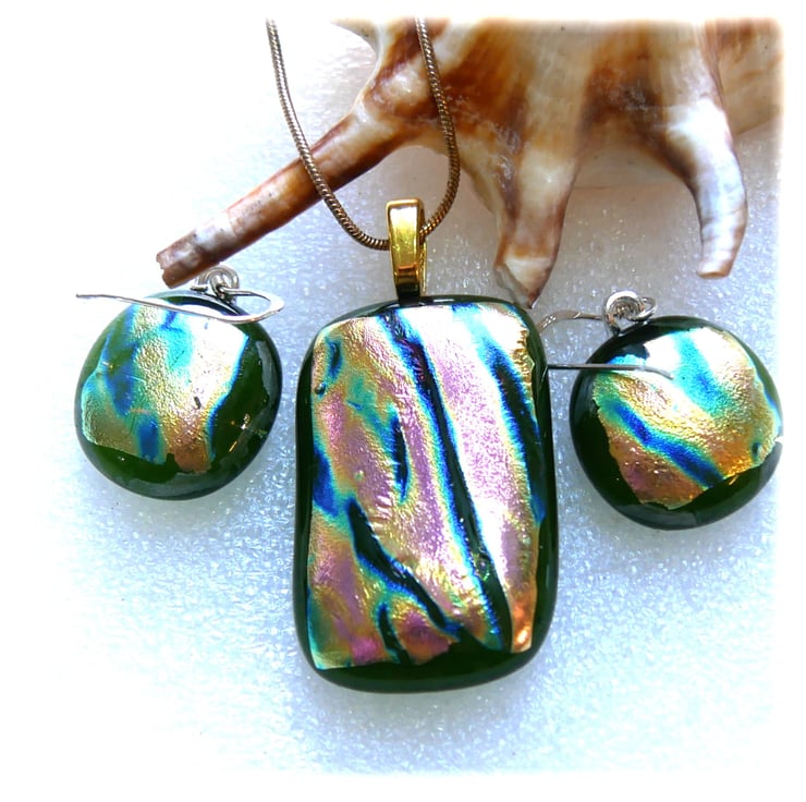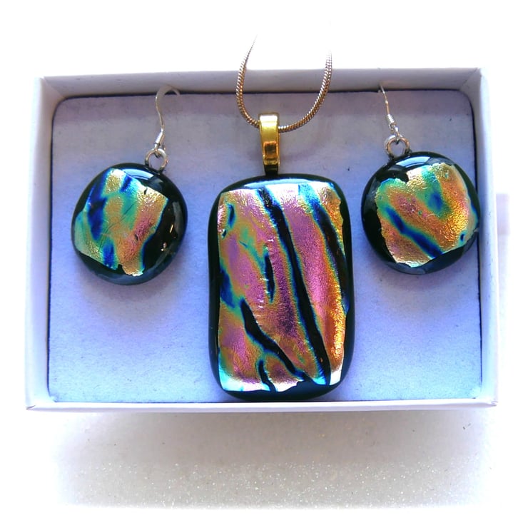 The dichroic glass cabochons for the pendant, matching earrings were handmade, by me with love.