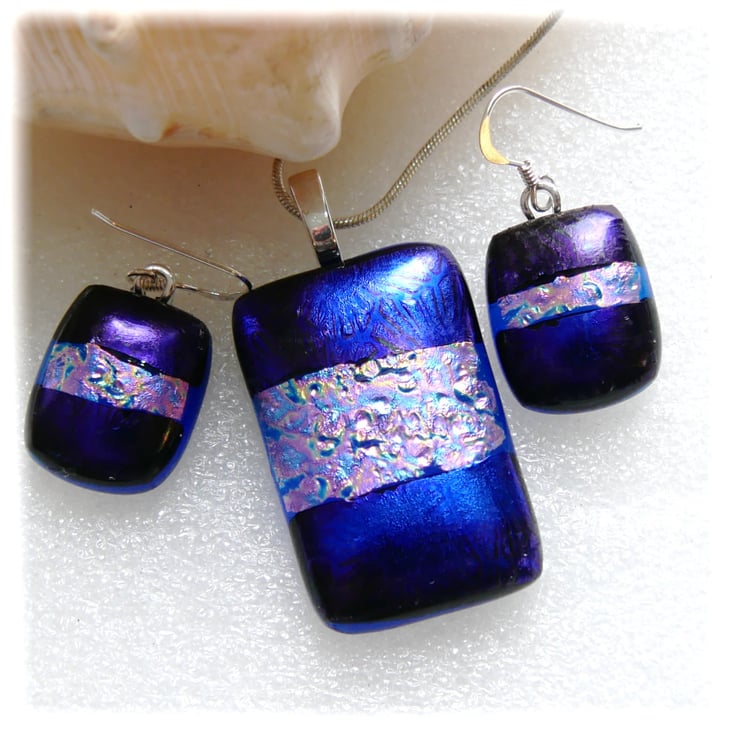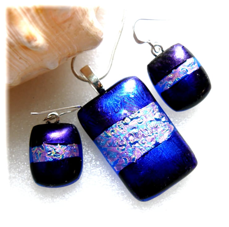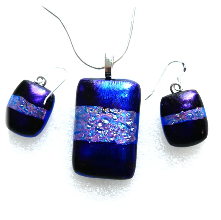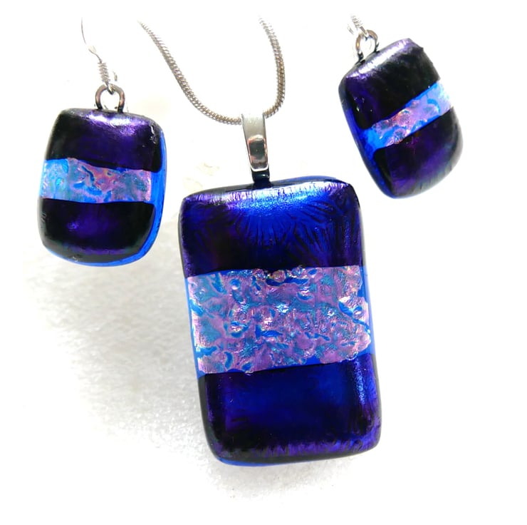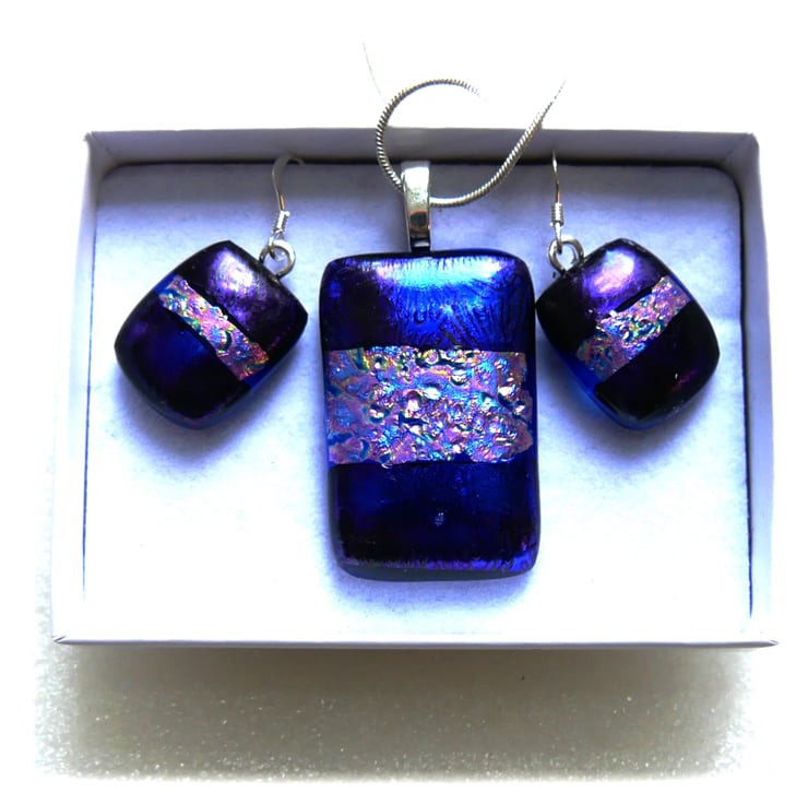 The dichroic glass cabochons for the pendant, matching earrings were handmade, by me with love.