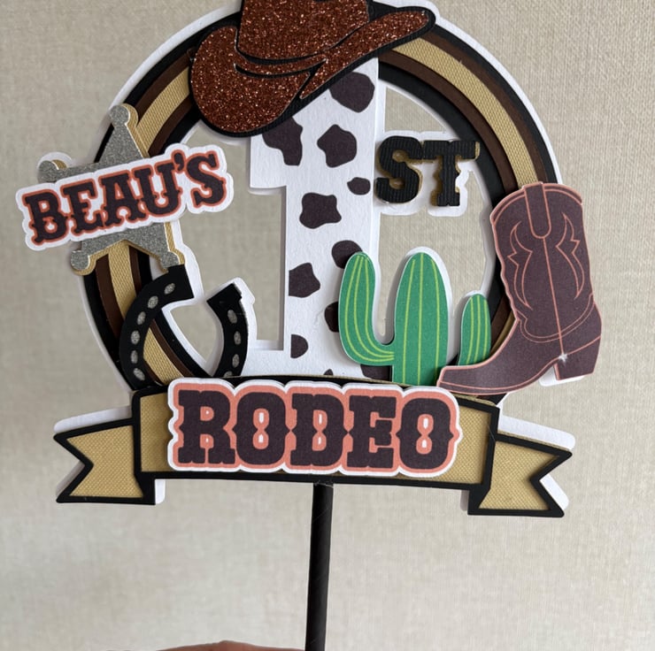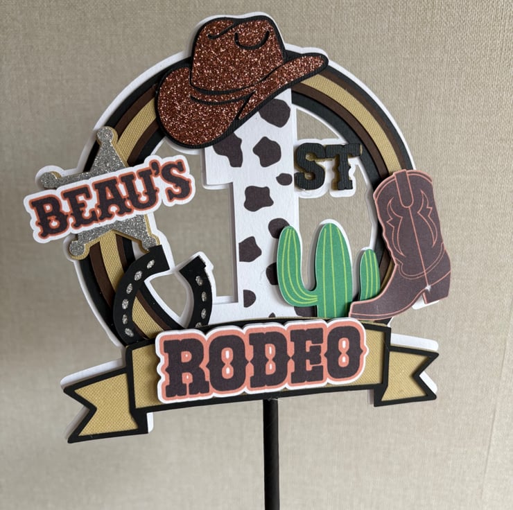 The topper is made from layers of textured card & assembled for a 3d effect. It measures just over 5.5".