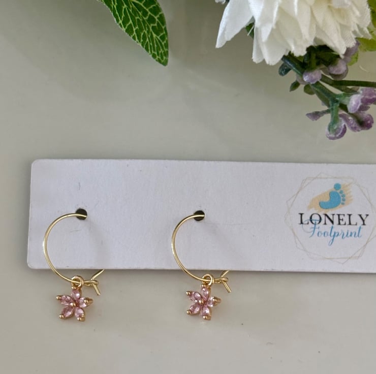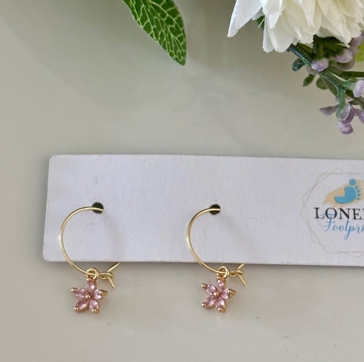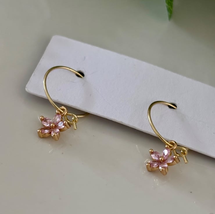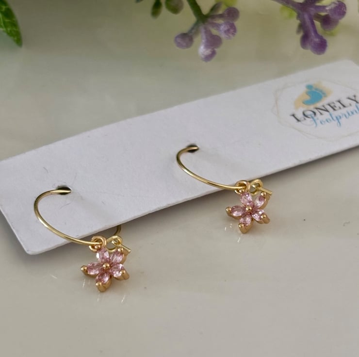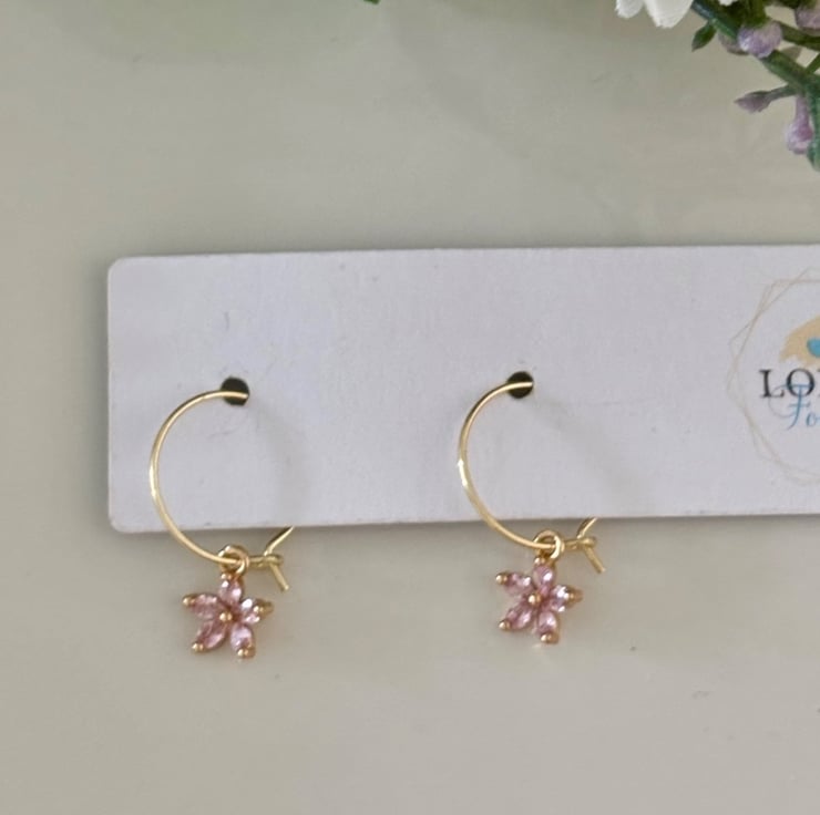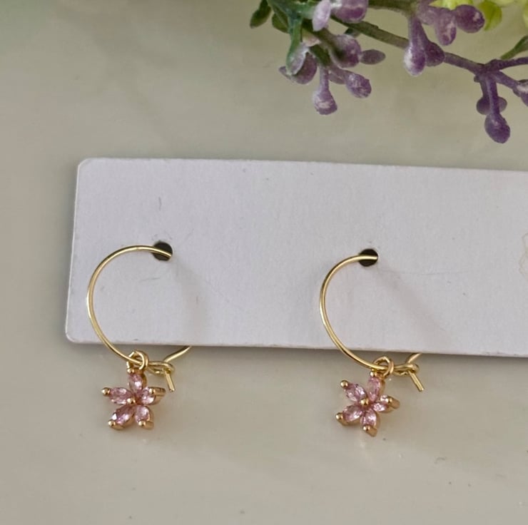Add a touch of elegance to your jewellery collection with these pink zircon floral hoop earrings.