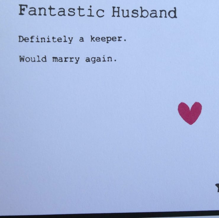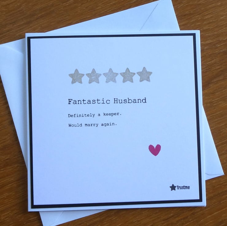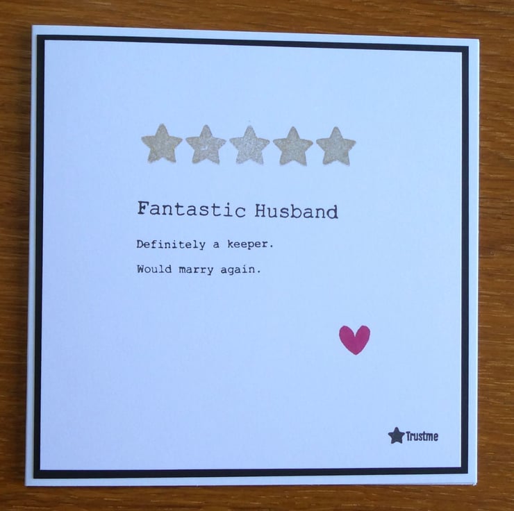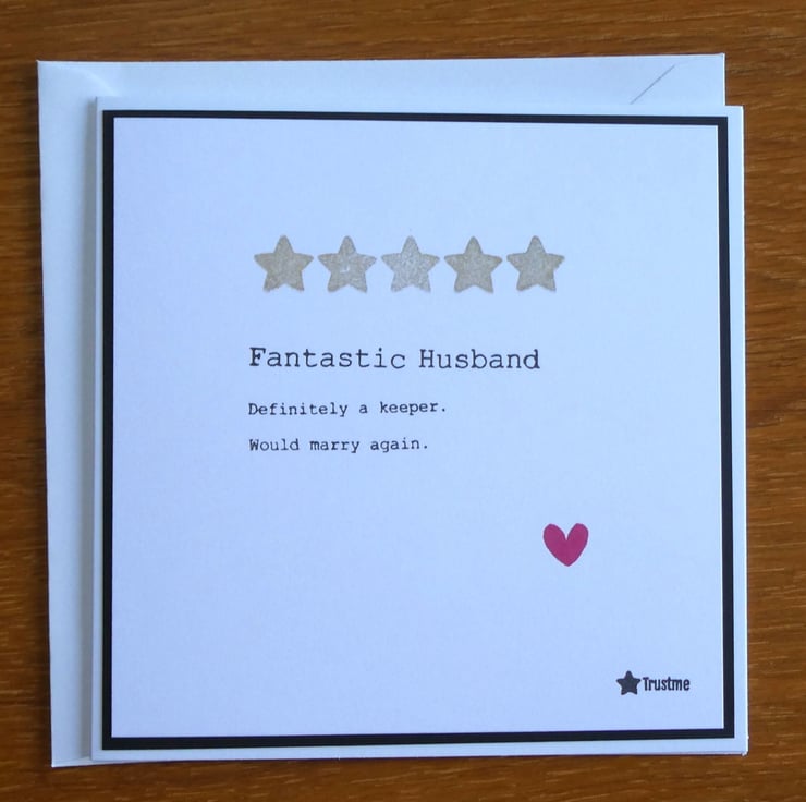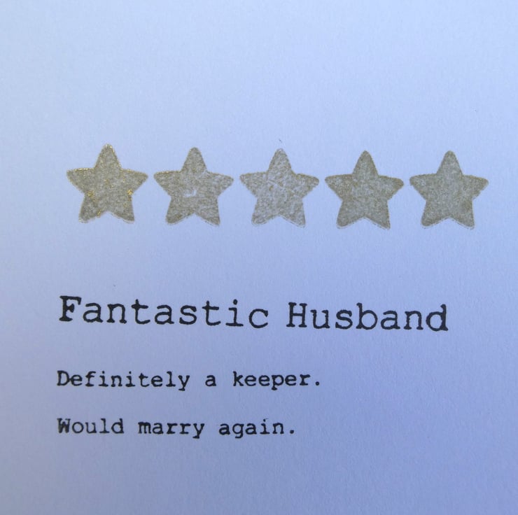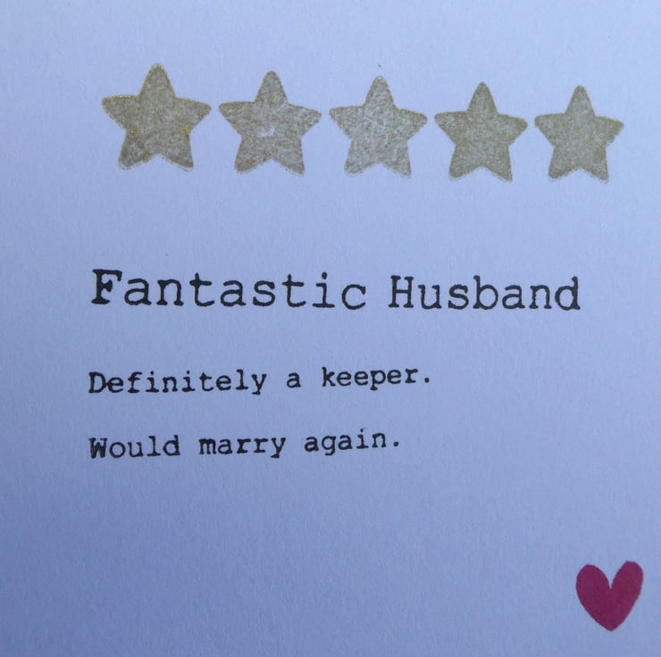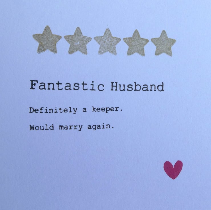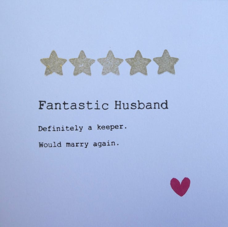 This simple and stylish card with a 5 star review for a special Husband makes a modern and different Anniversary card, Valentines Card or Birthday Card.