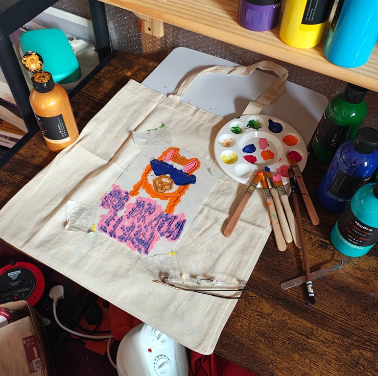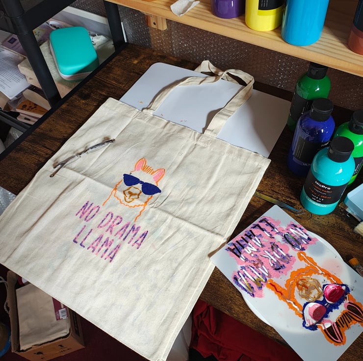 Cotton tote bag with a great design hand painted on the front. You could use it for school, shopping, gift bag as gift.