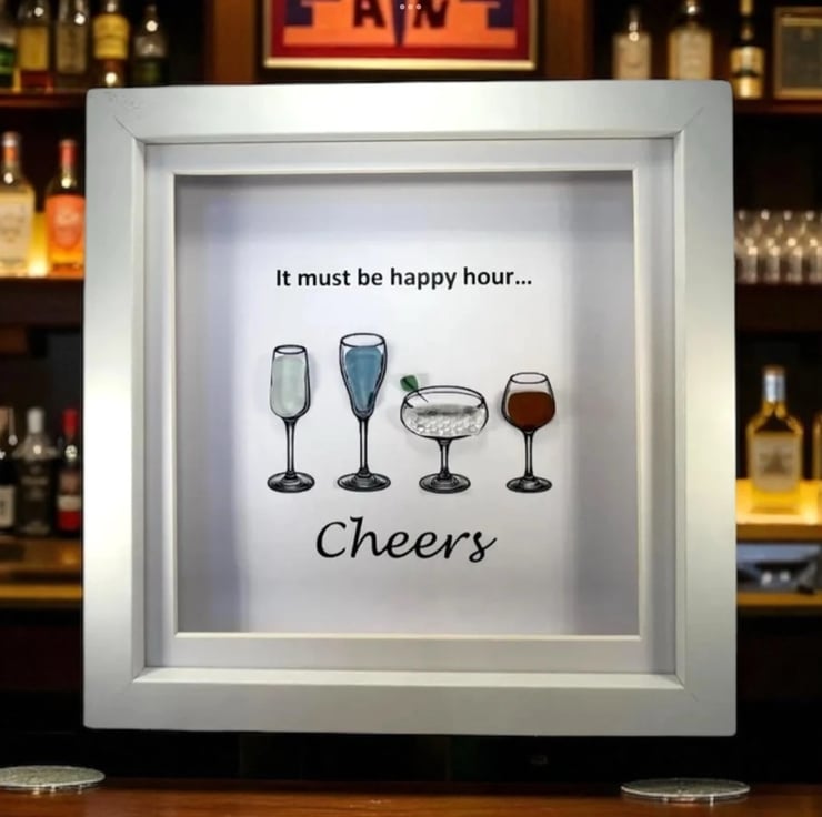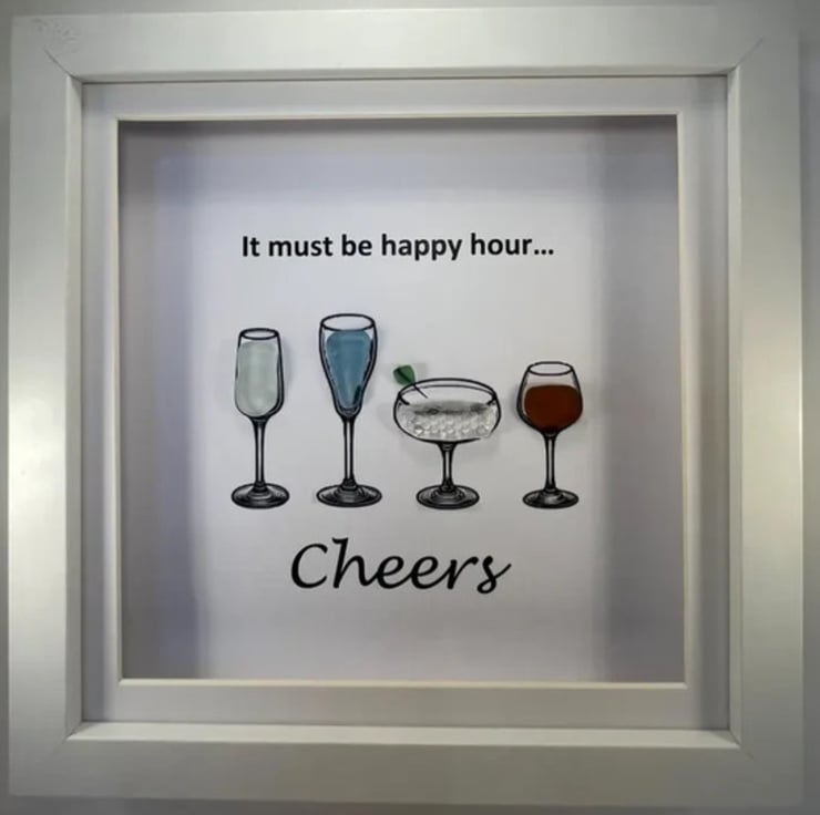 Made from Devon sea glass, 22.5 x 22.5 x 3cm wall mounted glass art, it can also be supplied with a white or black frame, please choose in the option below.