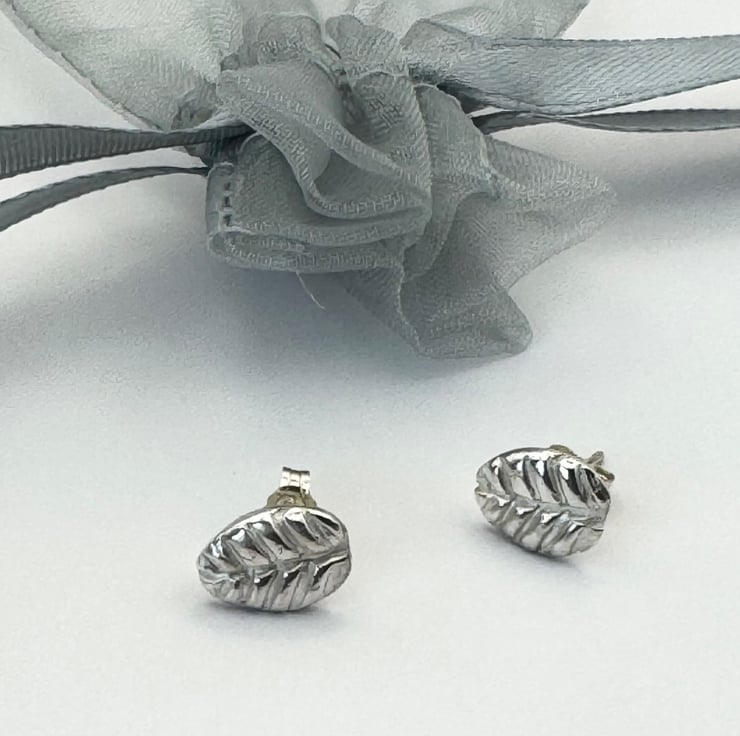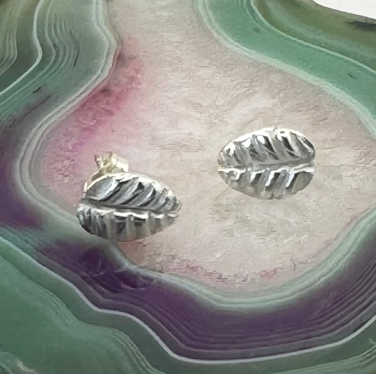 This beautiful pair of leaf stud earrings was made by myself using silver clay which is an eco friendly medium.