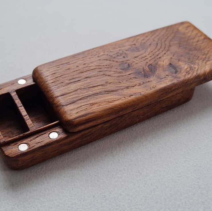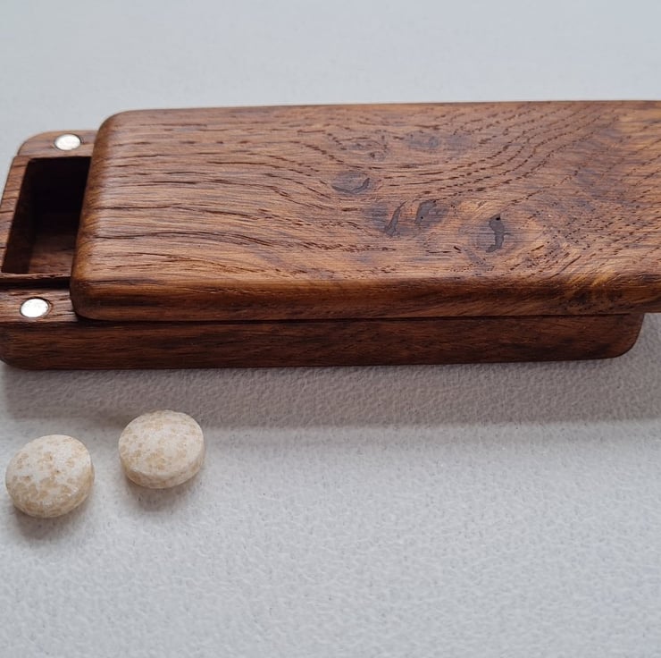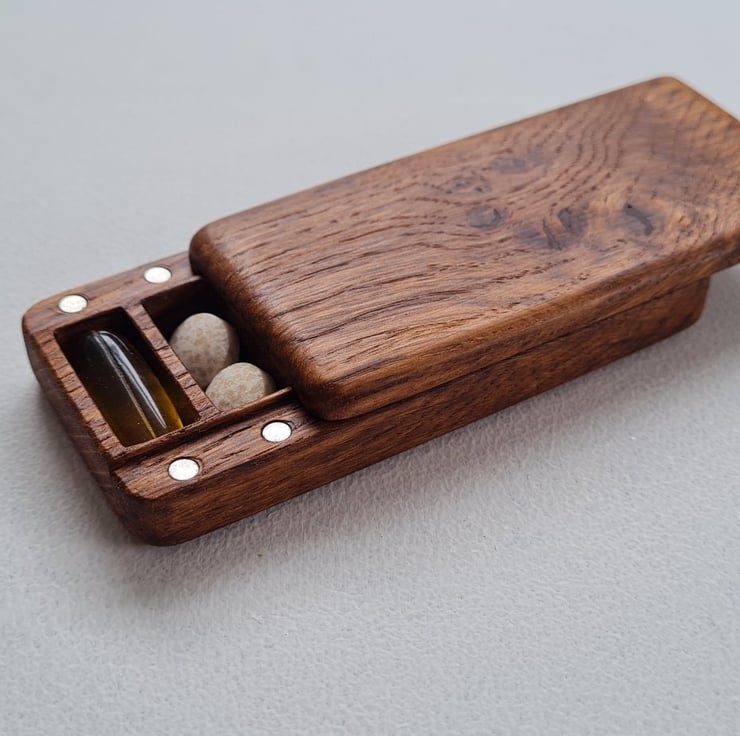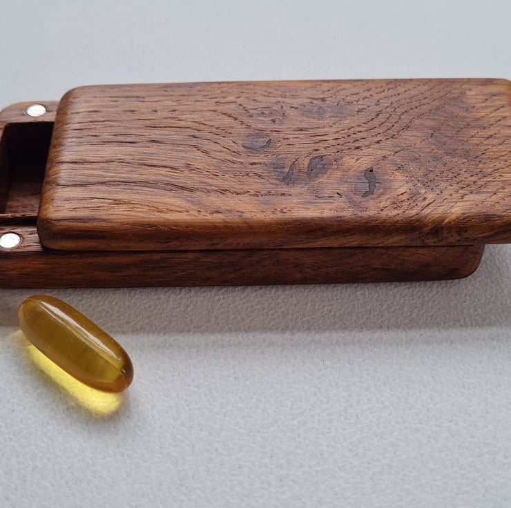 Crafted to bring both beauty and calm order to your daily routine, this small solid Tiger Oak wood pill box is more than just storage – it's a small ritual in itself.