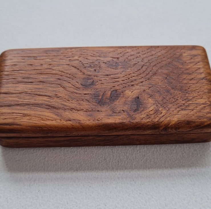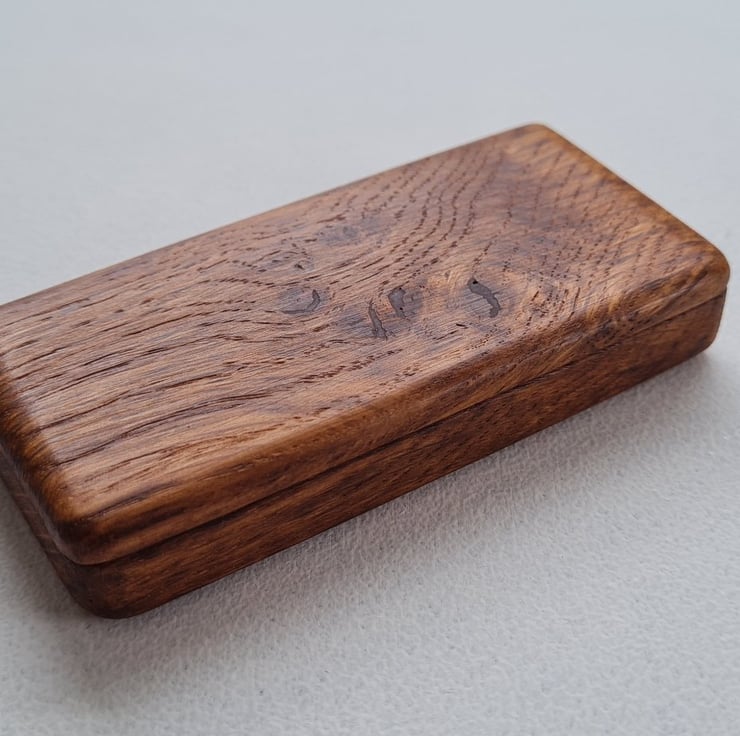 Handmade by us here in the UK, each box is carefully shaped from characterful Tiger Oak, chosen for its rich grain and natural warmth. The wood is lovingly finished with a natural food-safe wax oil, giving it a smooth, tactile feel while enhancing the unique patterns that make every piece one of a kind.