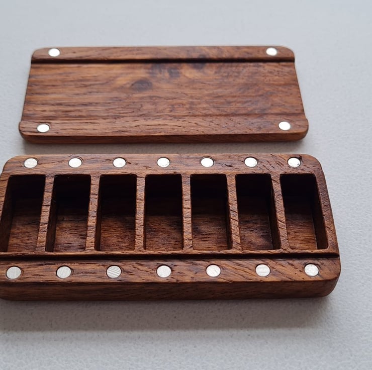 Designed to sit beautifully on a bedside table, your desk top or kitchen counter, this is a pill box you won't feel the need to hide away. It's sturdy, reliable, and made to last – a practical piece elevated by traditional materials and careful handwork.