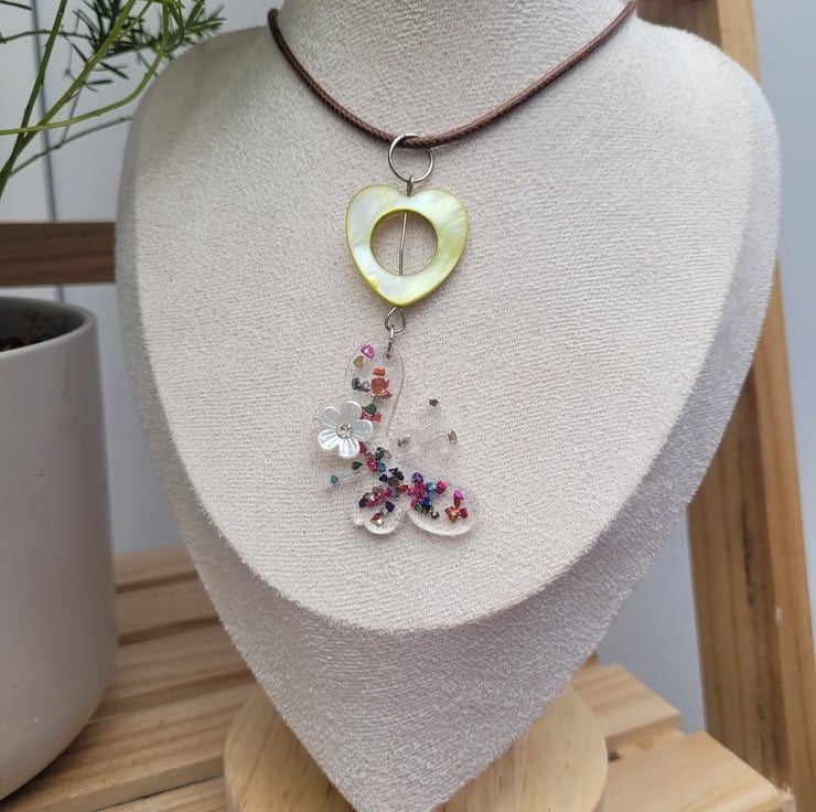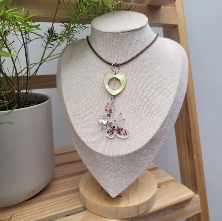 Butterfly Necklace with Brown Wax Cord.