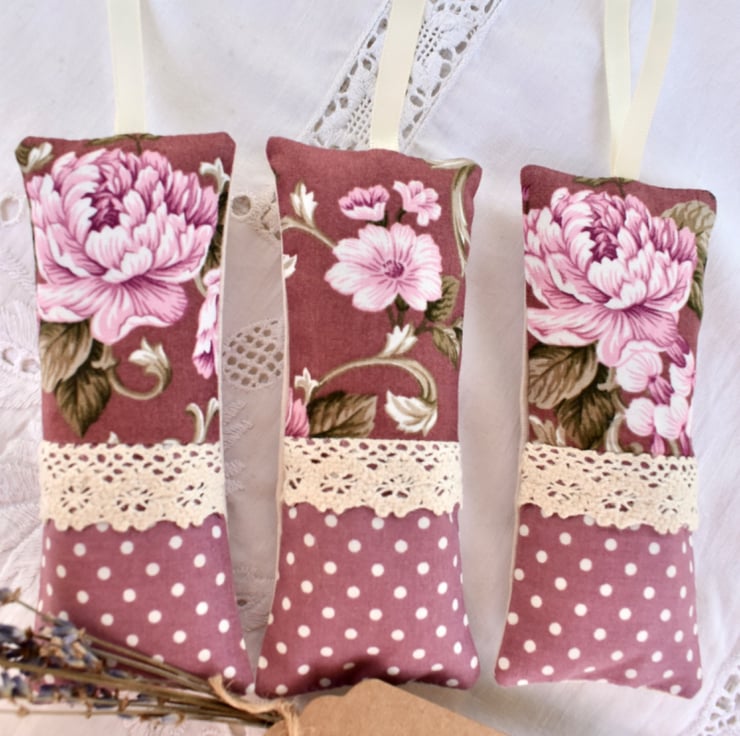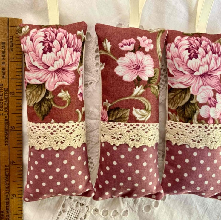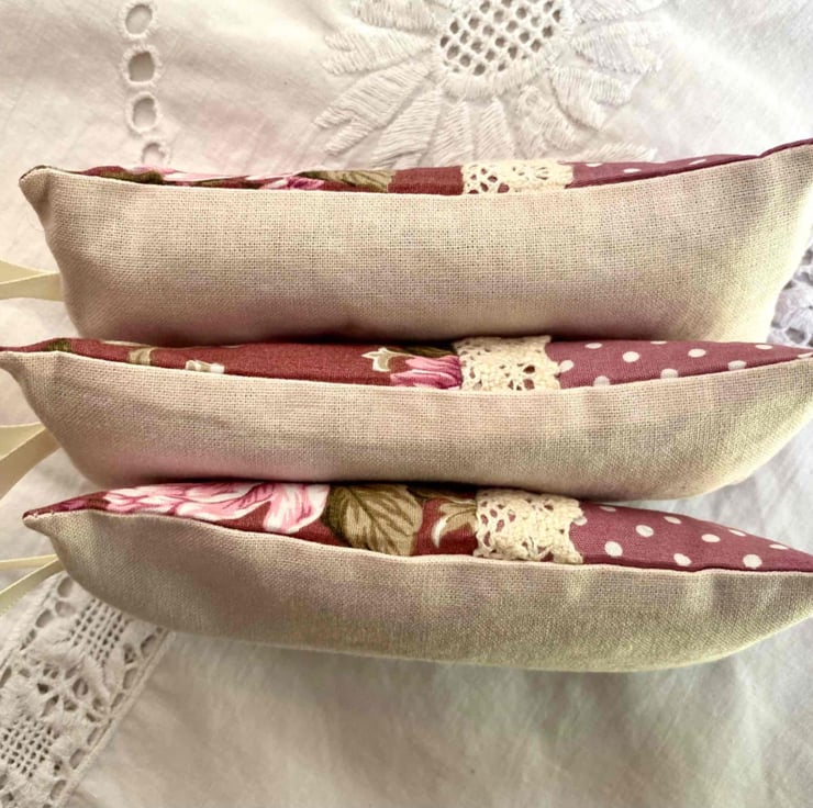 I have hand and machine sewn these pretty lavender bags using breathable cotton fabrics.