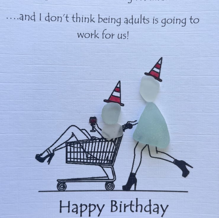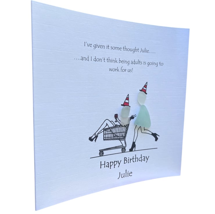 Original and unique, handcrafted, seaglass birthday card, made from hand picked seaglass from Devon's beaches.