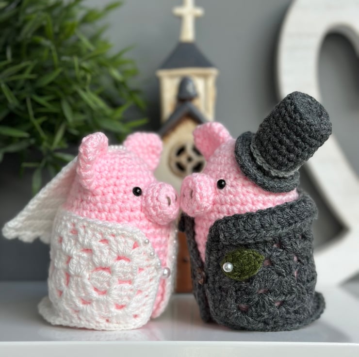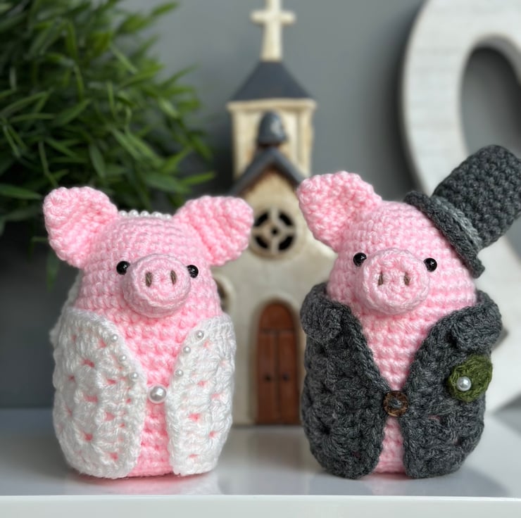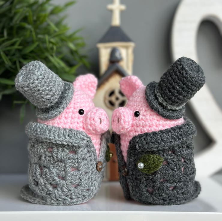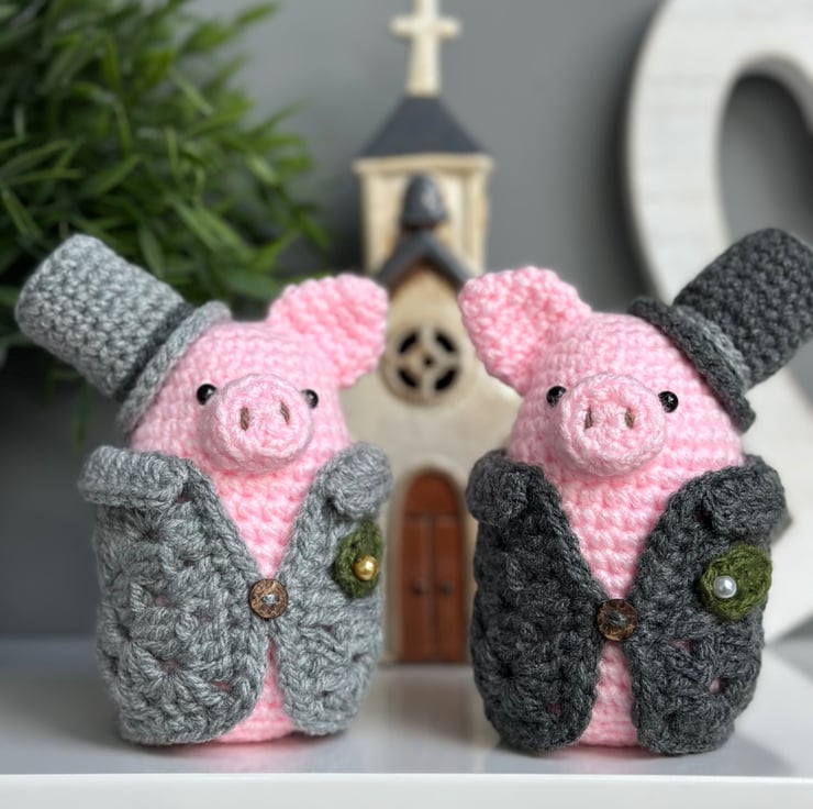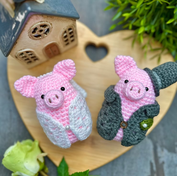 Each piggy measures approximately 14cm by 8cm, and is made with Aran yarn.