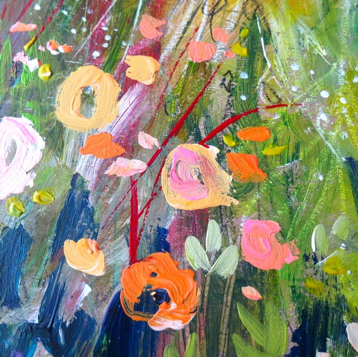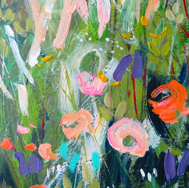 I paint contemporary, floral abstract paintings, filled with joy, energy and a splash of childhood nostalgia.