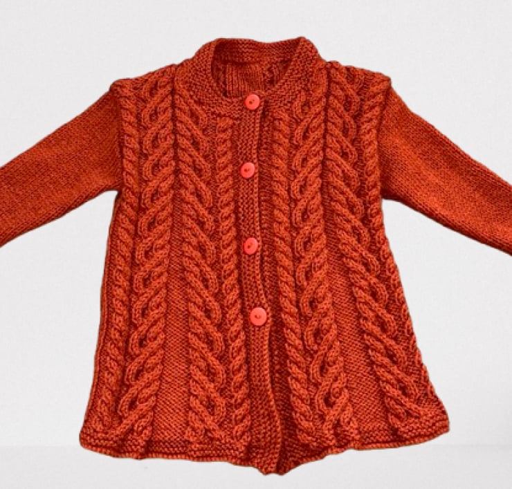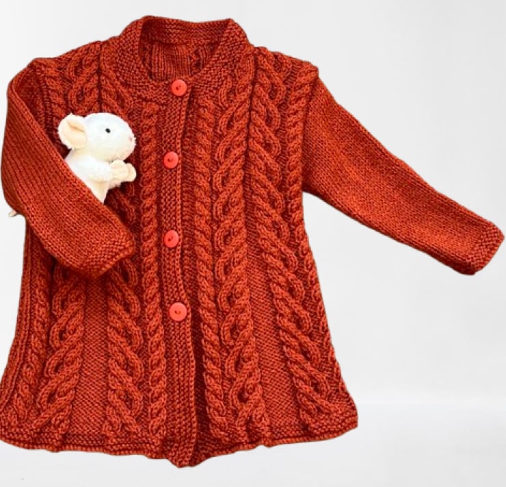Hand Knitted girls longer length cardigan in a fit and flare style