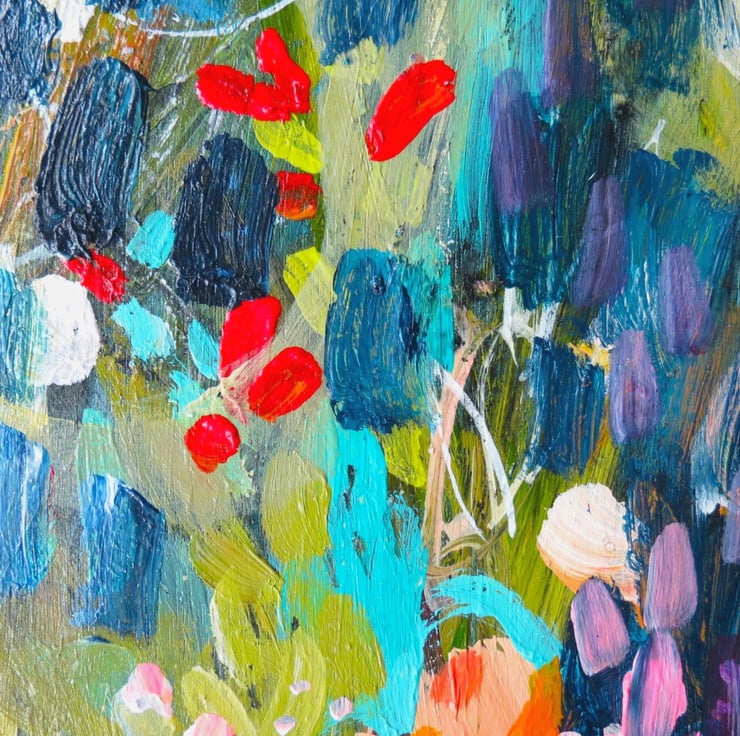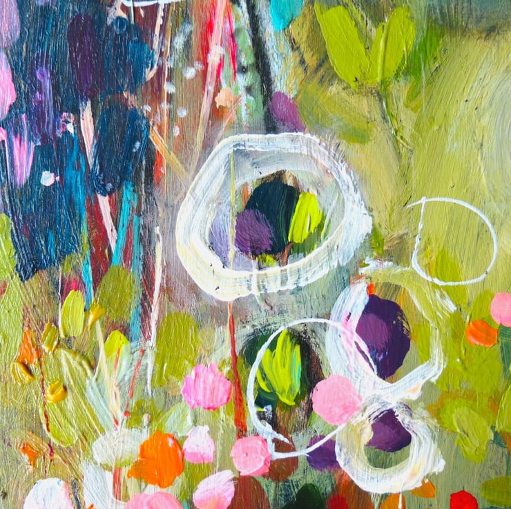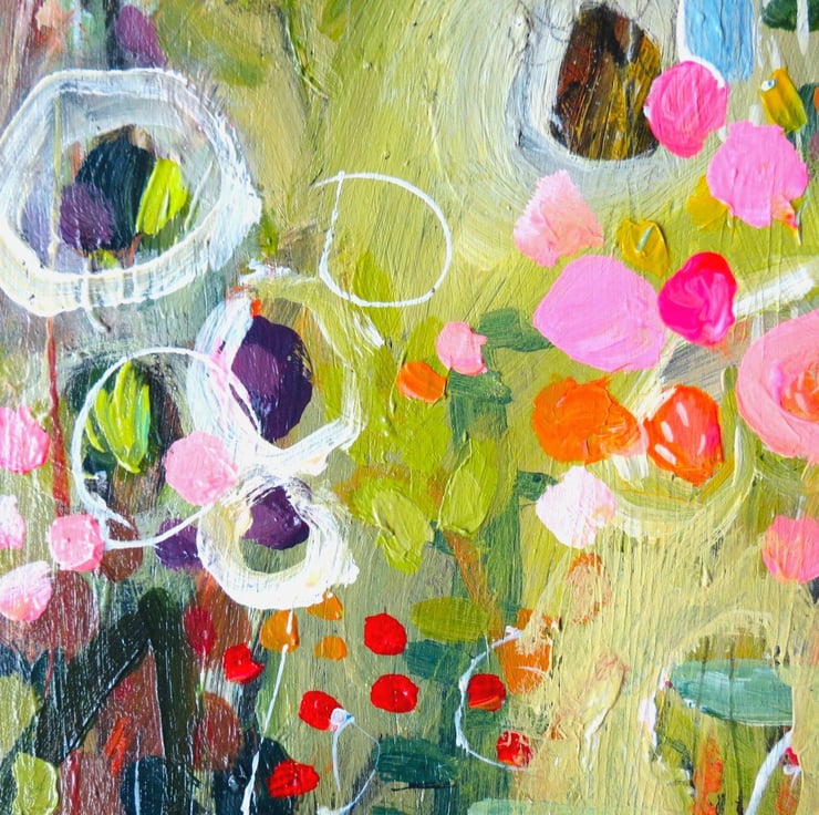 I paint contemporary, floral abstract paintings, filled with joy, energy and a splash of childhood nostalgia.