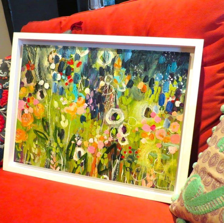 The piece is a celebration of colour, movement and was born from memories of an evening stroll through the colourful hedgerows of Devon. I wanted to capture that magical moment when the sun is low and the wild flowers seem to glow from within.