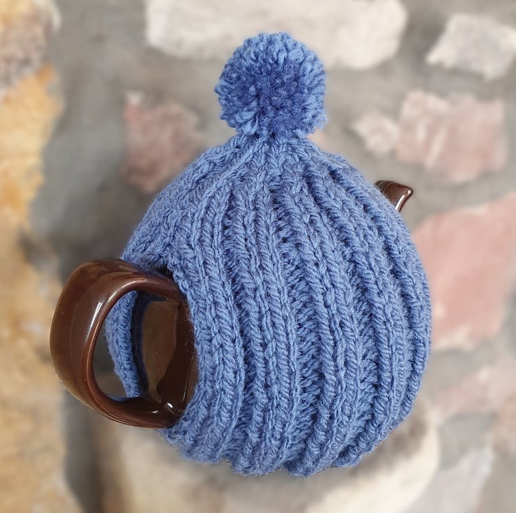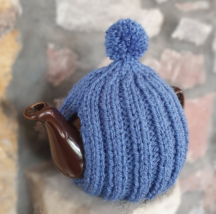 Small Tea Cosy for 2 Cup Tea Pot, Denim Blue, Hand Knitted